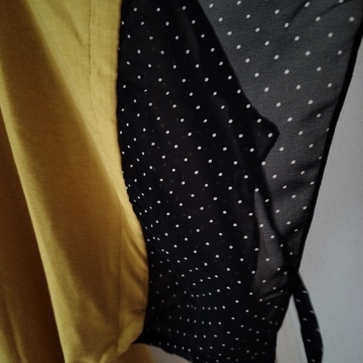 新品【3L】大きいサイズ レディース ミセス 半袖カットソー トップス 重ね着にも Vネック 袖リボン NB-4610 体型カバー 黄色系 からし色 收藏