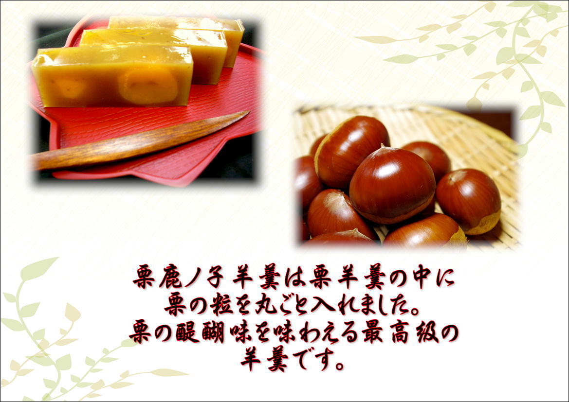 | 名称 | 栗菓子、栗羊羹(国内製造) |
