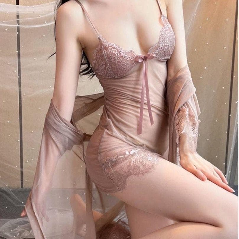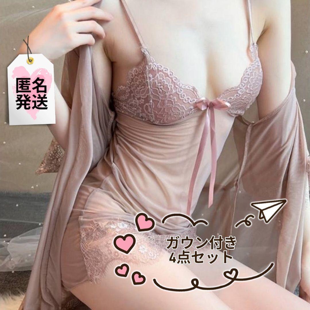 セクシー ランジェリー ヘビードール カウンベルト付き 4点セット シースルー ベージュ フリーサイズ 收藏