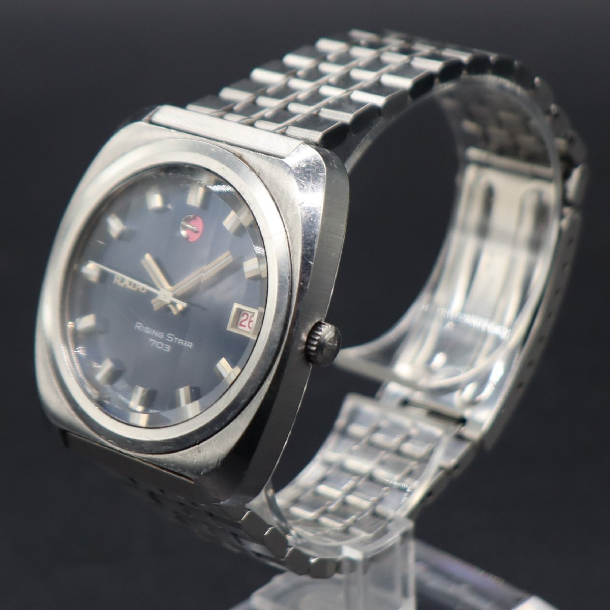 RADO Rising Star 703 ラドー ライジングスター 自動巻き Ref.11894/1 ネイビー文字盤 スイス製 赤デイト 純正ブレス アンティーク メンズ 收藏
