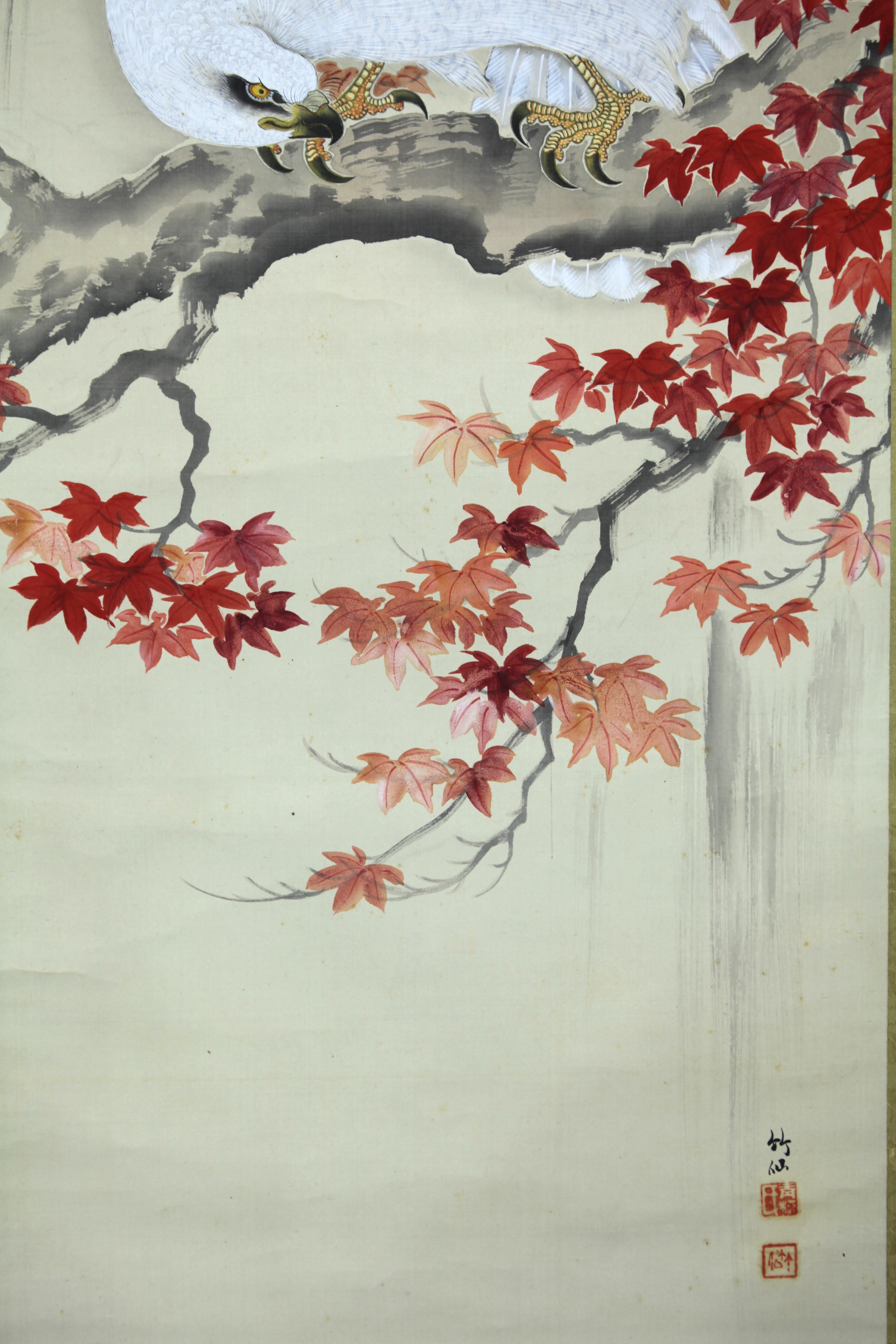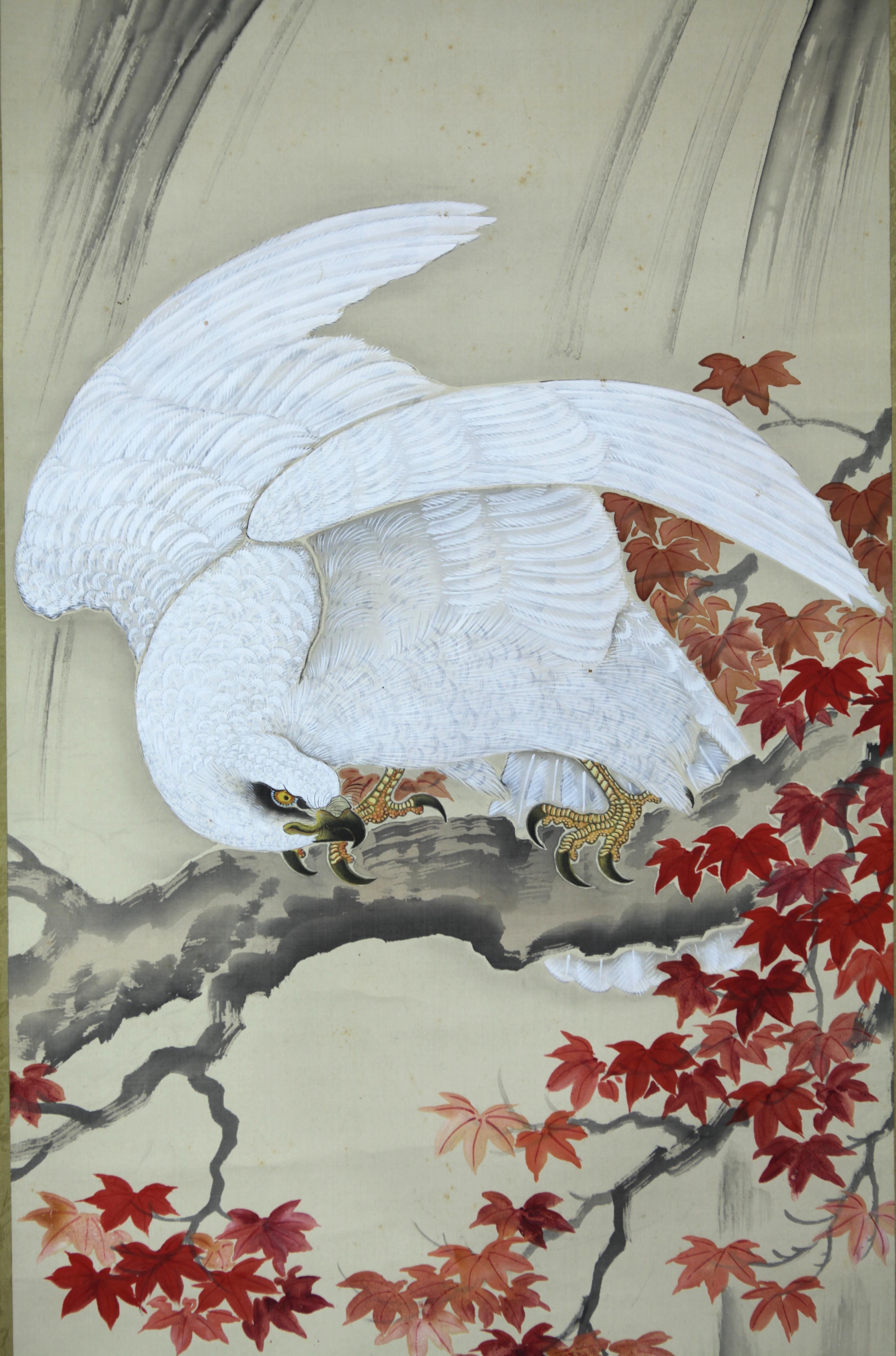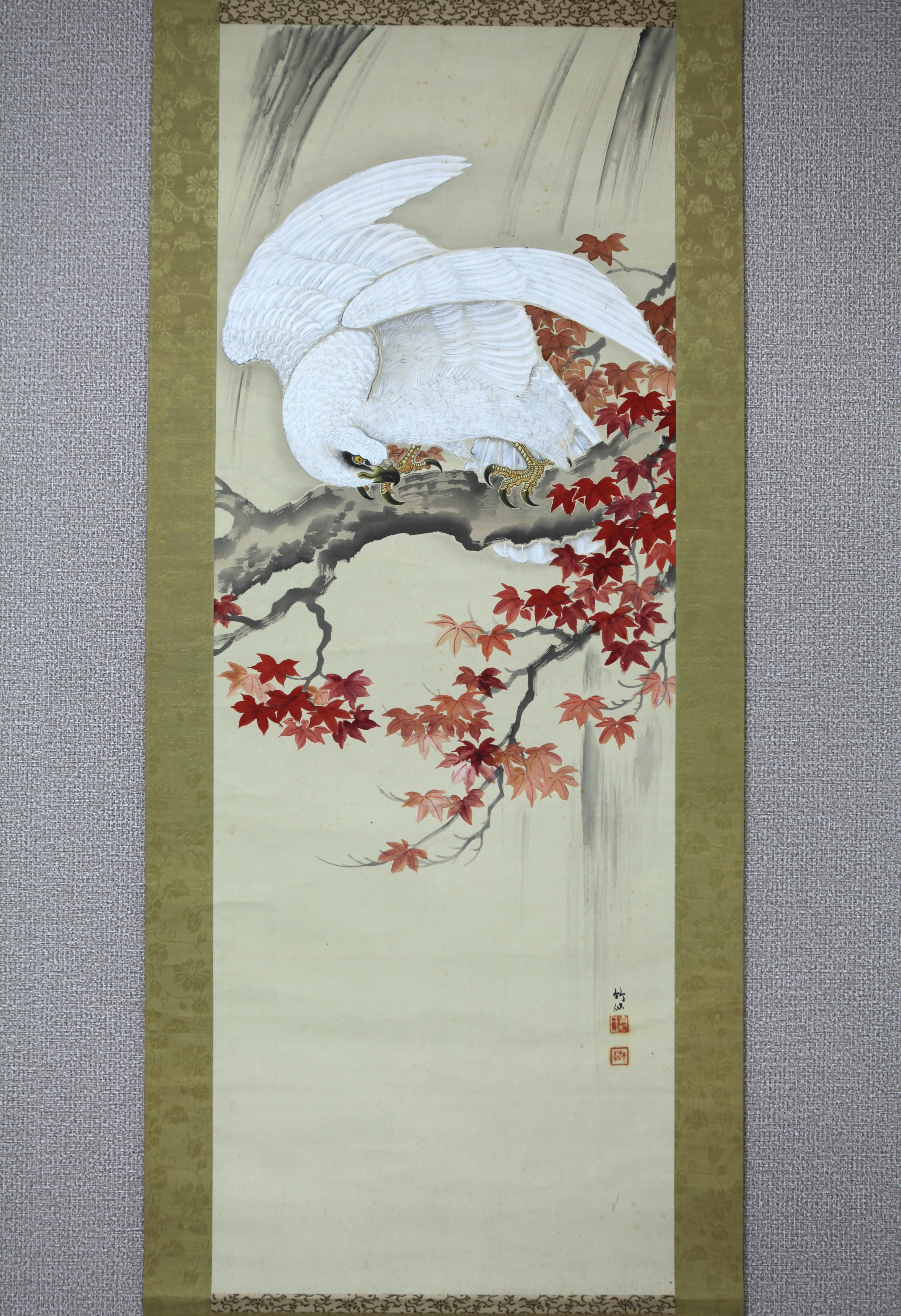 | 【真作】【風車】 青柳竹仙 「紅葉白鷹」◎肉筆絹本◎明治・大正期 日本画家 「帝国絵画番附」 「東京之部優秀画家」掲載 | ||||||||||||||||||||