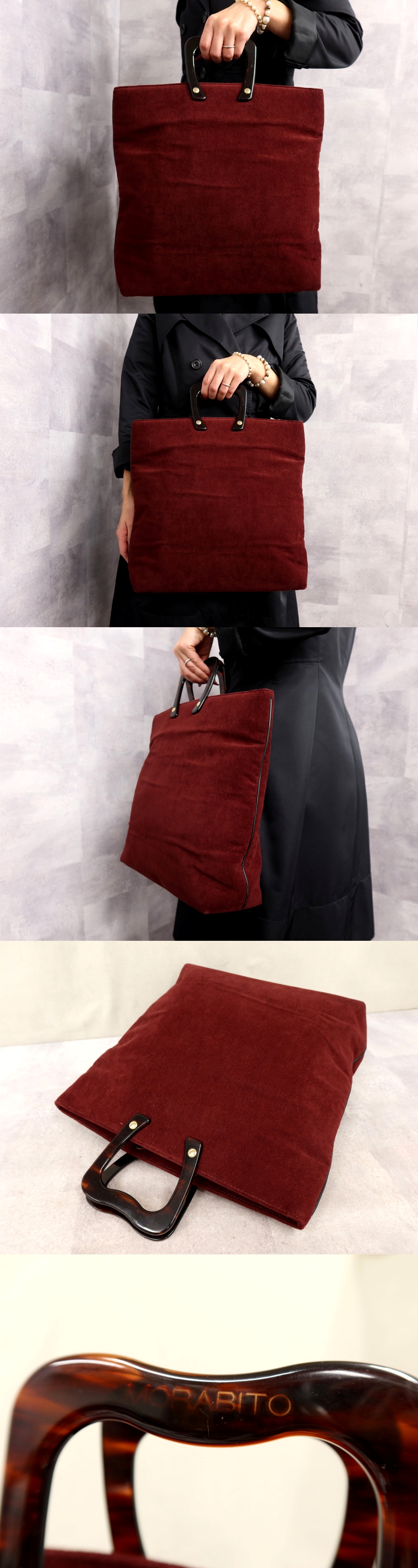 ●超美品●MORABITO モラビト●プラスチックハンドル●コットン●ハンド バッグ●ボルドー●ヴィンテージ●A4 書類 収納 かばん●Js63124 收藏