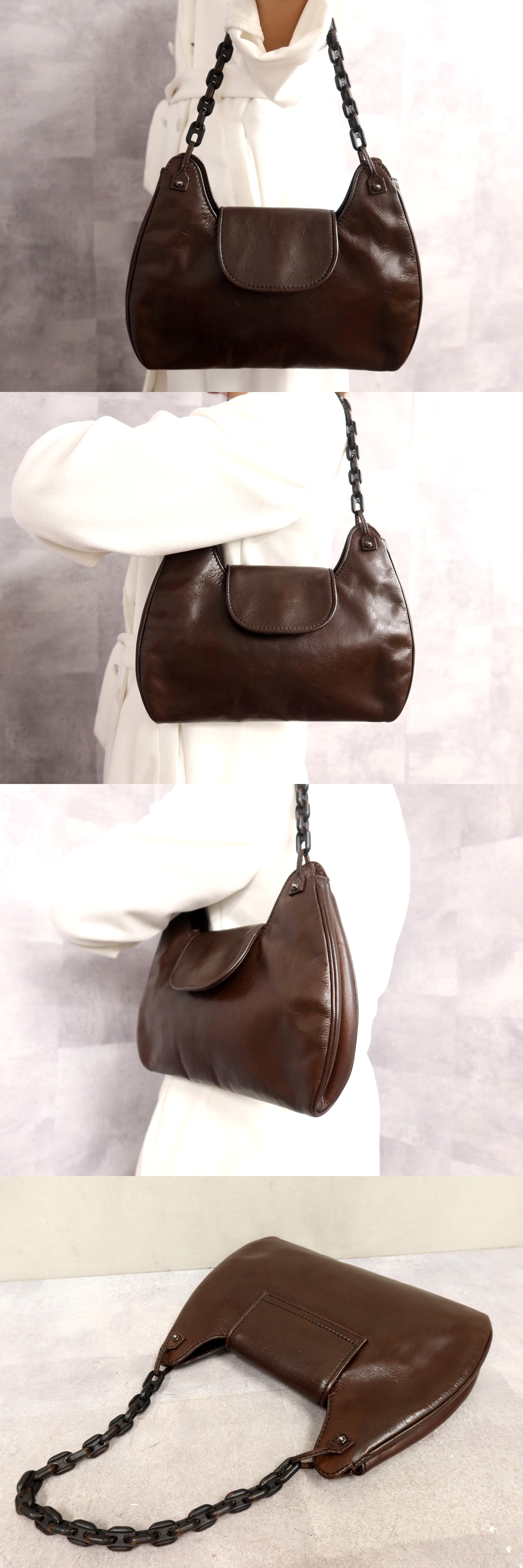 ●超美品●GUCCI グッチ●ウッドチェーン●カーフ レザー 本革●ミニ ショルダー バッグ●ブラウン●シルバー金具●イタリア製●Js63356 收藏