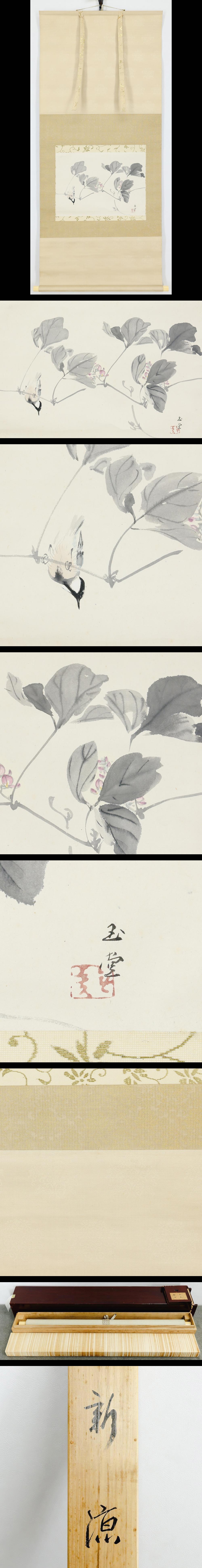 【真作】【WISH】川合玉堂「新涼-葛に小禽」日本画 掛軸 共箱二重箱 ◆葛蔓に宿る小さな命の詩情、名幅 〇帝室技芸員 #25120003 收藏