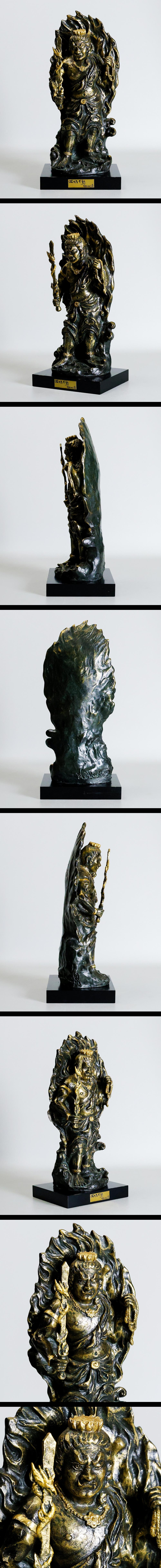 【真作】【WISH】月形那比古「波切不動」ブロンズ 桐箱 作者直筆短冊付 高さ42cm ◆不動像名品 〇斗陶会会長 国内外活躍陶芸家 #25126004 收藏