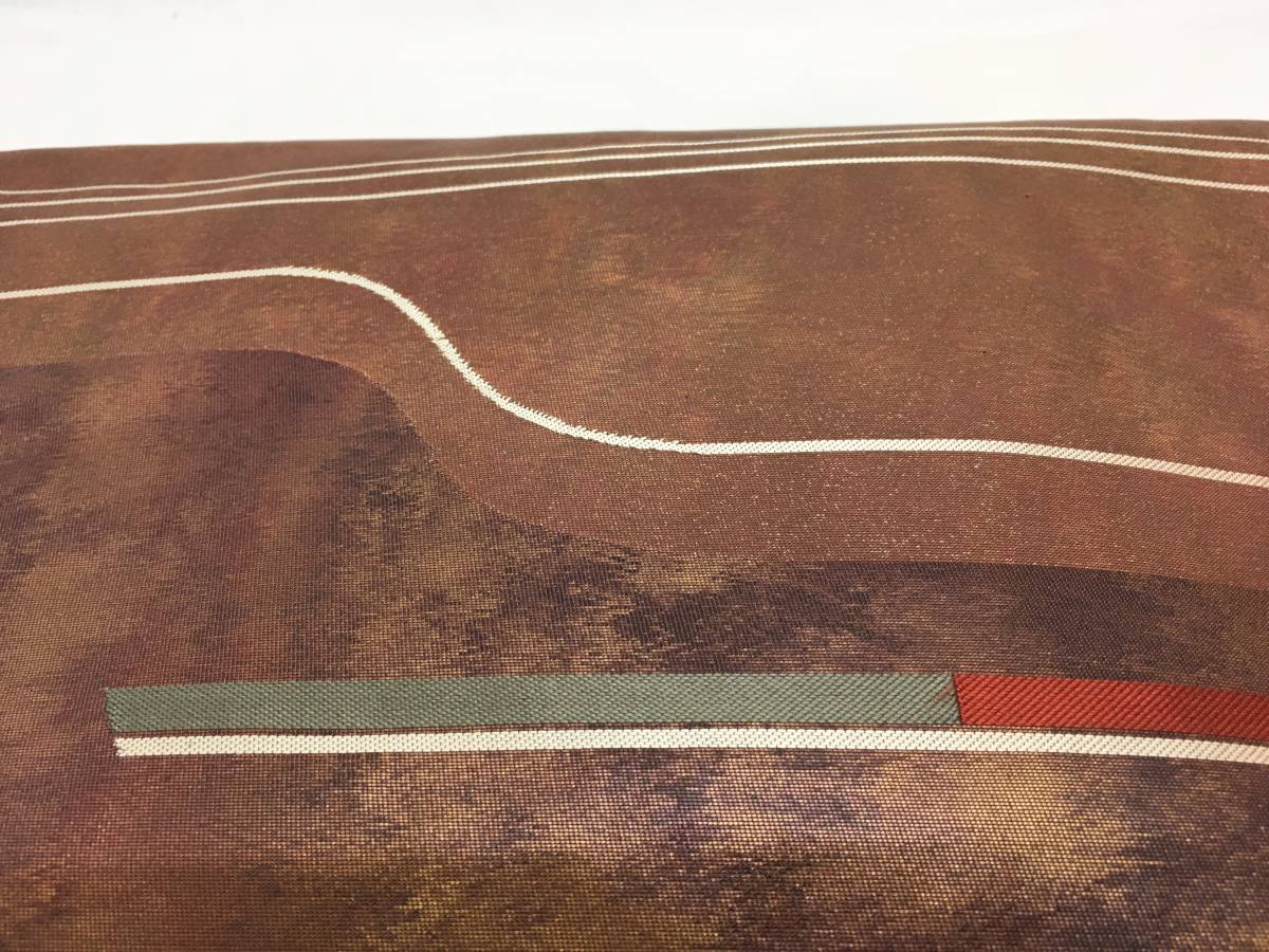 ☆名古屋帯 正絹 仕立て上がり エビ茶色・金 レトロモダン 收藏