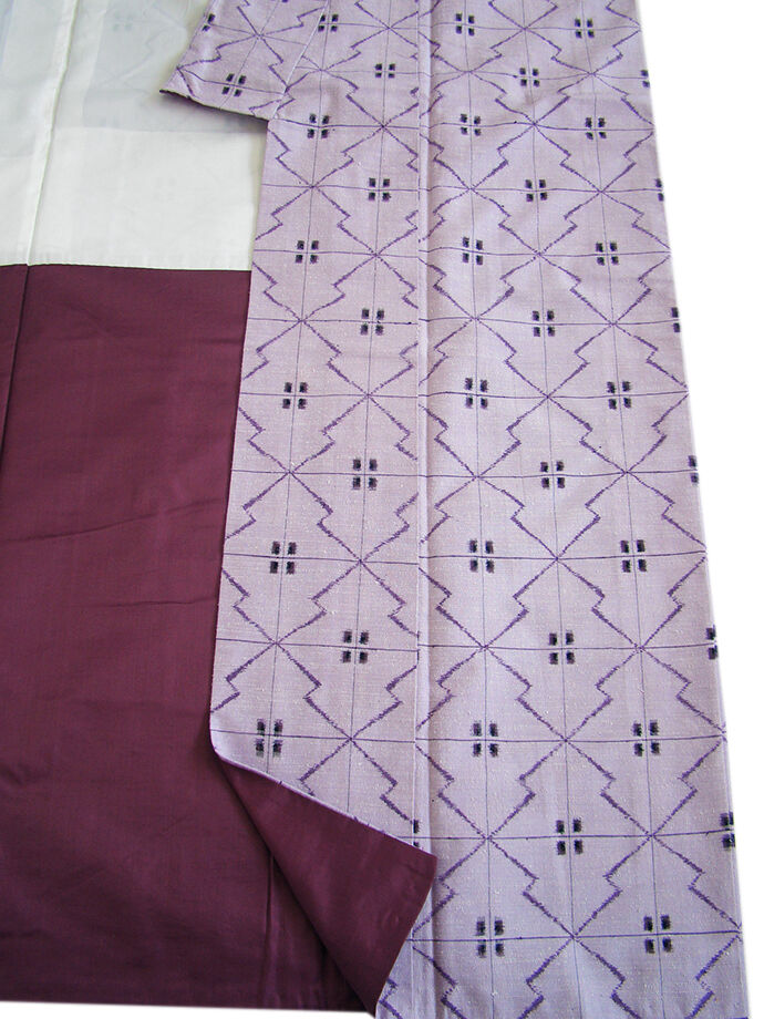 | 商品説明 | こちらのお品は「袷」ですので10月から5月までお召頂ければと思います。 しなやかな紬は、着易く動きも軽く、着くずれしない腰の強さを併せ持った お洒落着としていつでもどこへでもお気軽にお愉しみ頂けご愛用頂けるお品です。 しなやかなふっくらとした肌触りも心地よい柔らかな紬地、 白藤色地に黒、蒲萄鼠色の格子に松皮菱柄の織柄、 八掛は滅紫色(正絹)、幅広い年代の方にお召し頂けます。 |