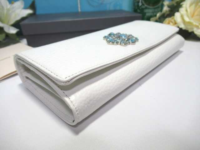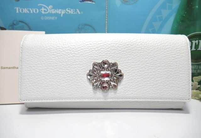 送料無料 55%引 サマンサタバサ デラックス 豪華 キラキラ ビジュー付 牛革 かぶせ 長財布 ホワイト 白 新品 証明書付 開運 金運UP 收藏