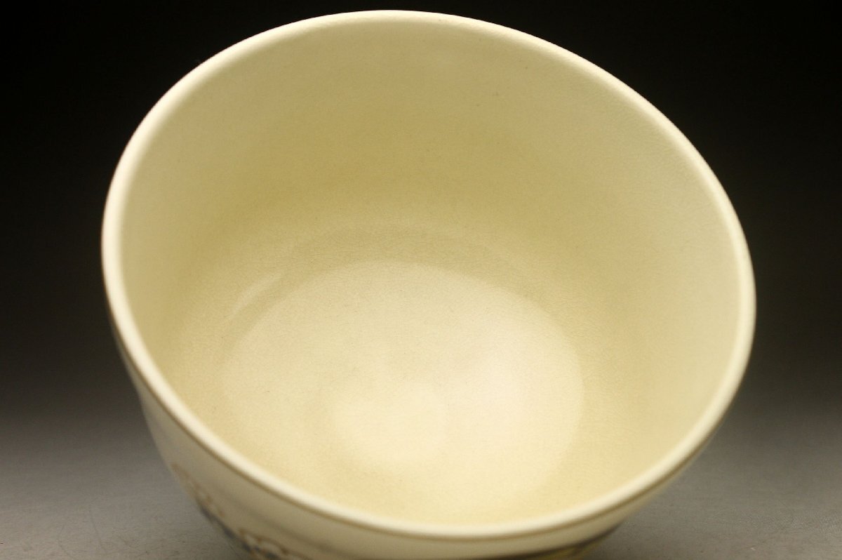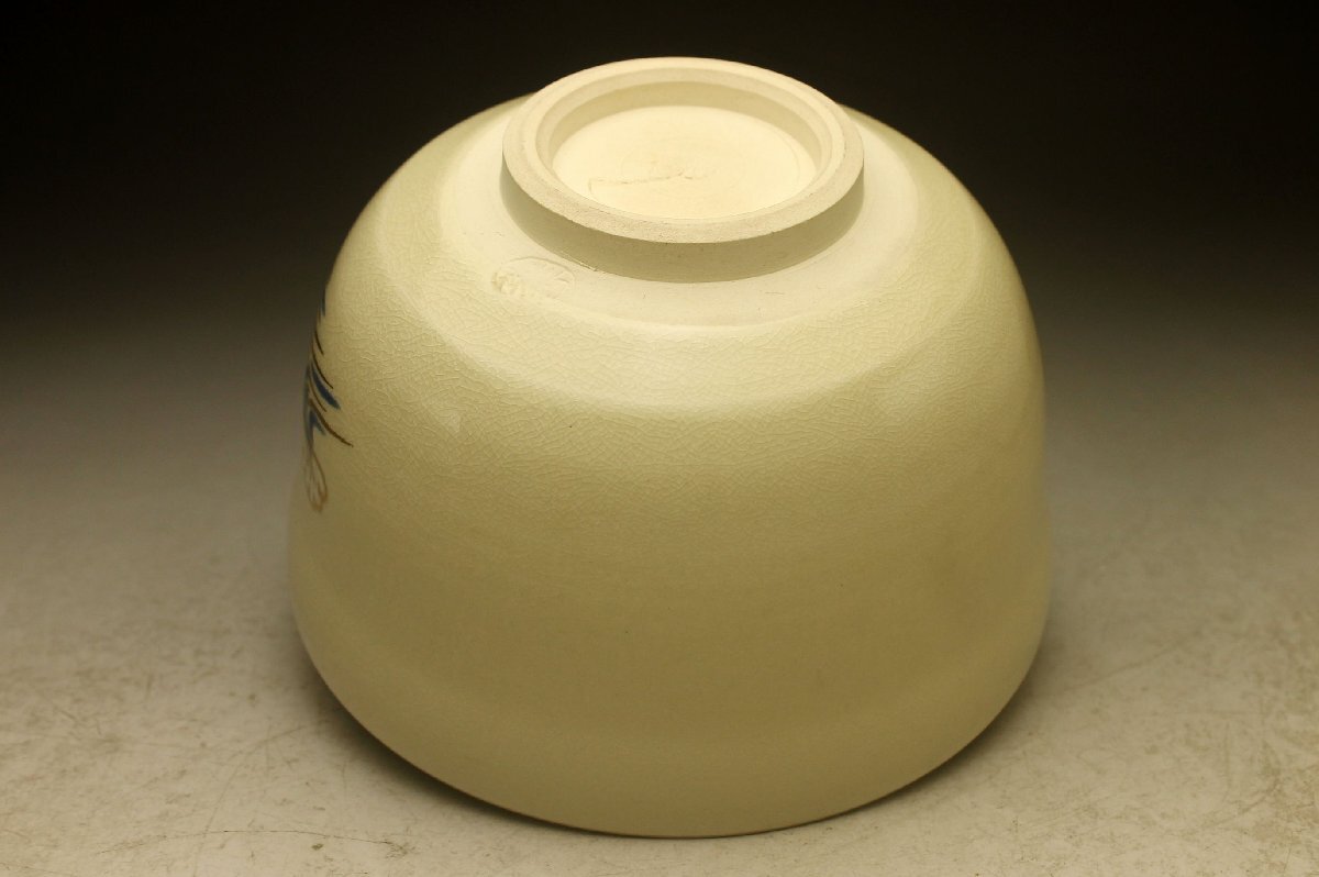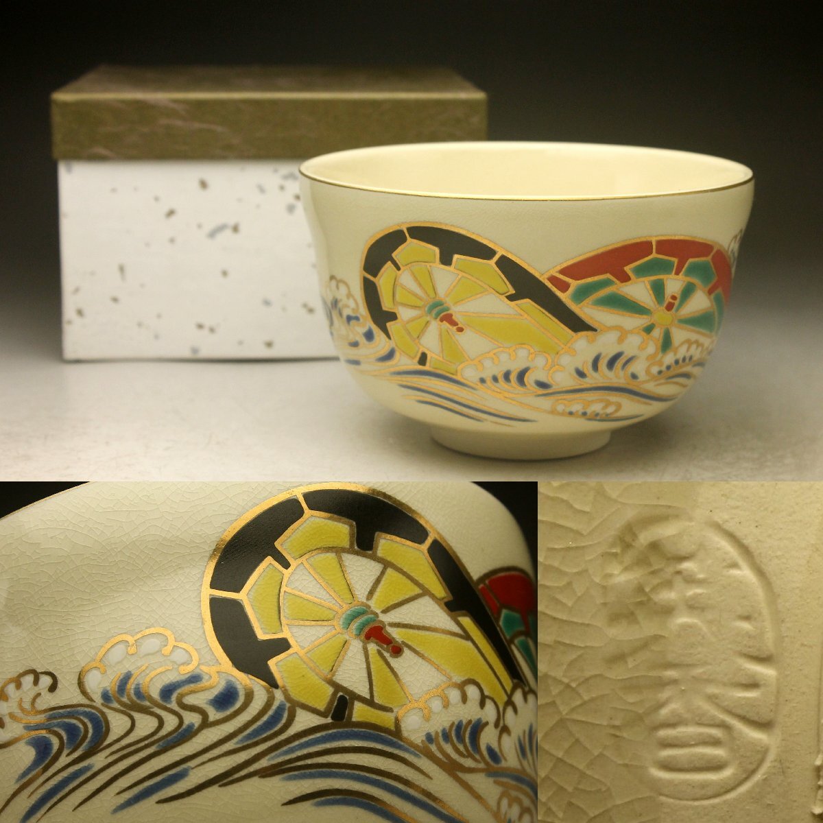 【余韻】 清水焼 宮地英香 色絵波輪文 茶碗★無傷美品 化粧箱<同梱可> 收藏