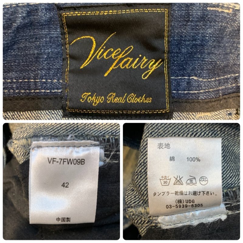 K306 メンズ パンツ VICEFAIRY ヴァイスフェアリー ジーンズ デニム インディゴ ブーツカット 加工 / 約W31 全国レターパック配送 收藏