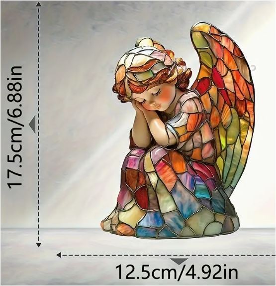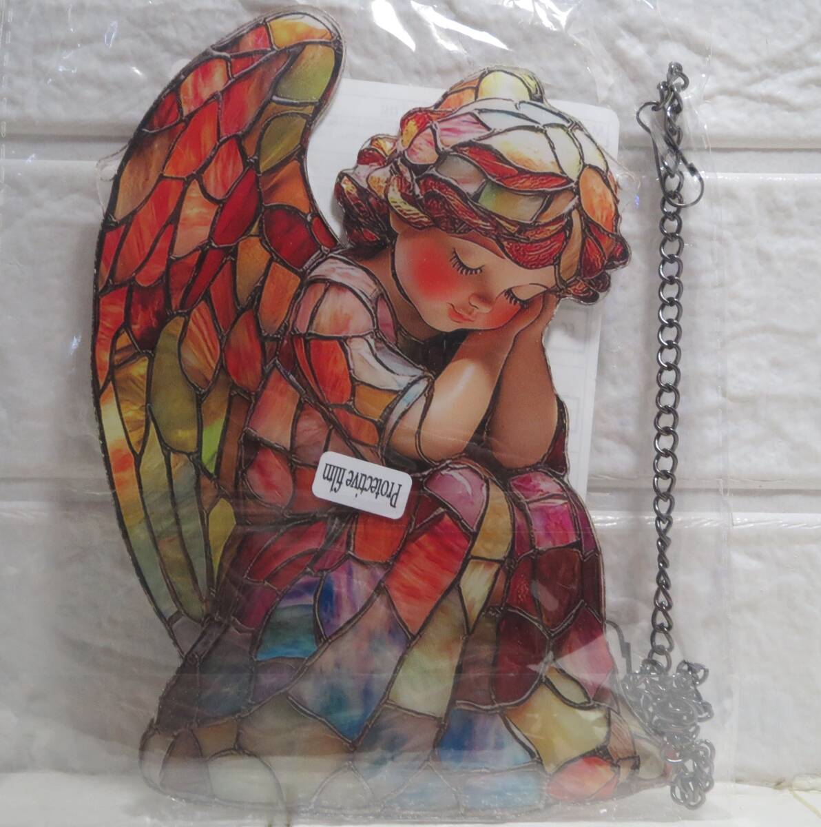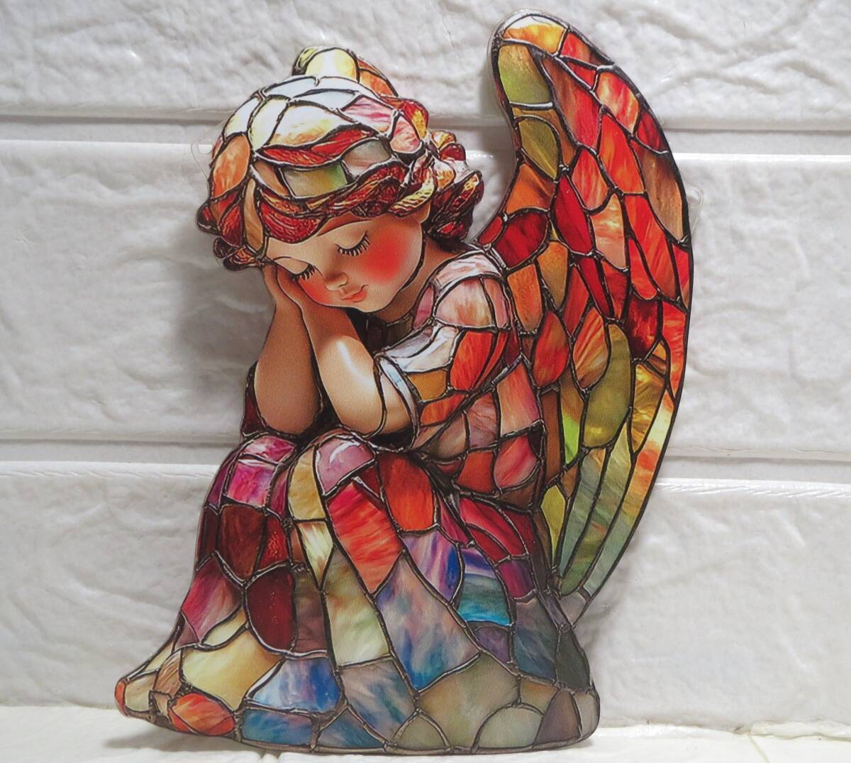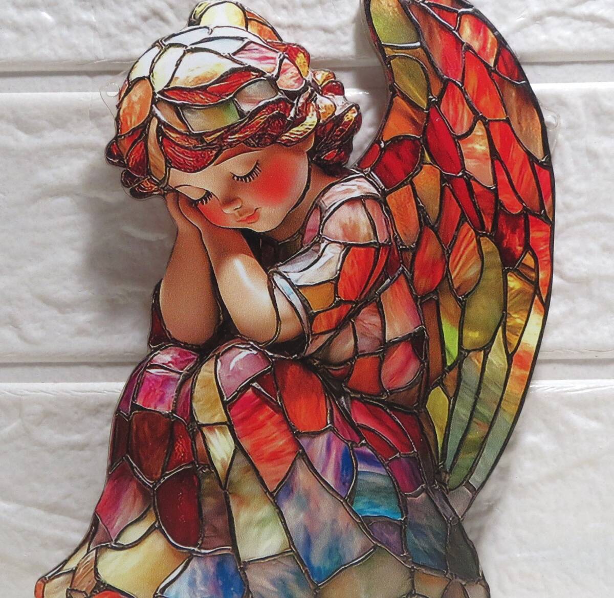 新品・サンキャッチャー・ステンド調・夢見る幼天使・玄関扉のアクセント・窓際のサンキャッチャーに・100均の皿台を使って置物にしても 收藏