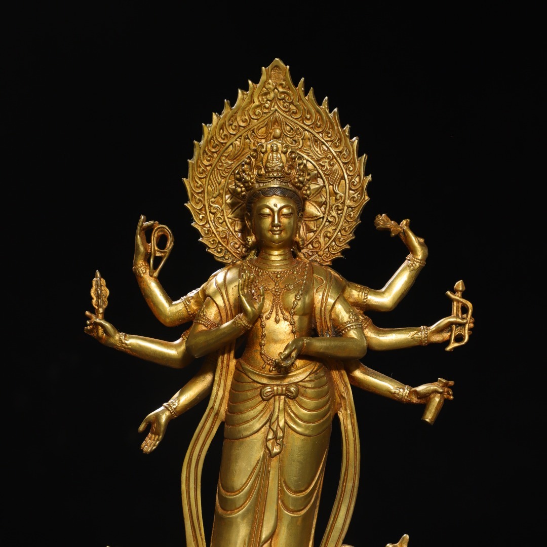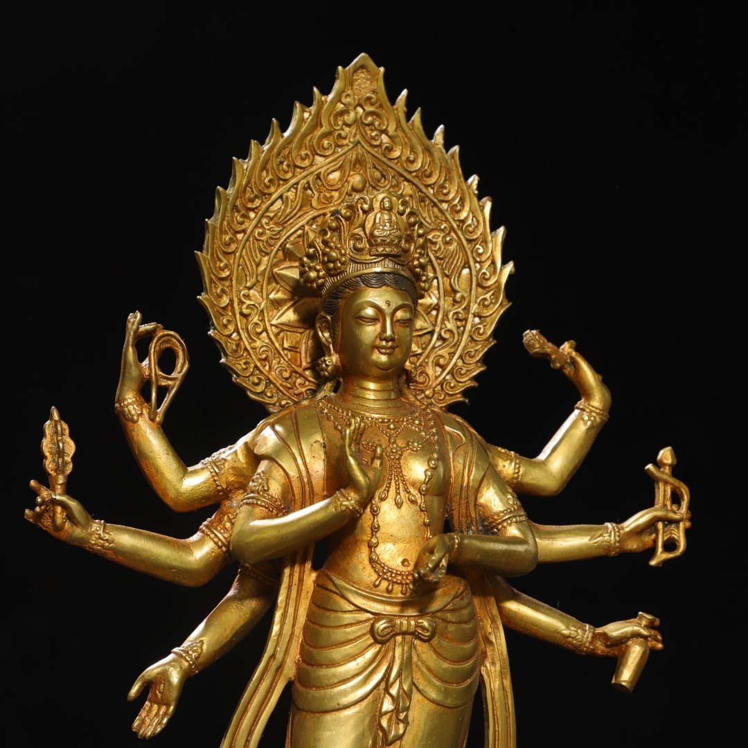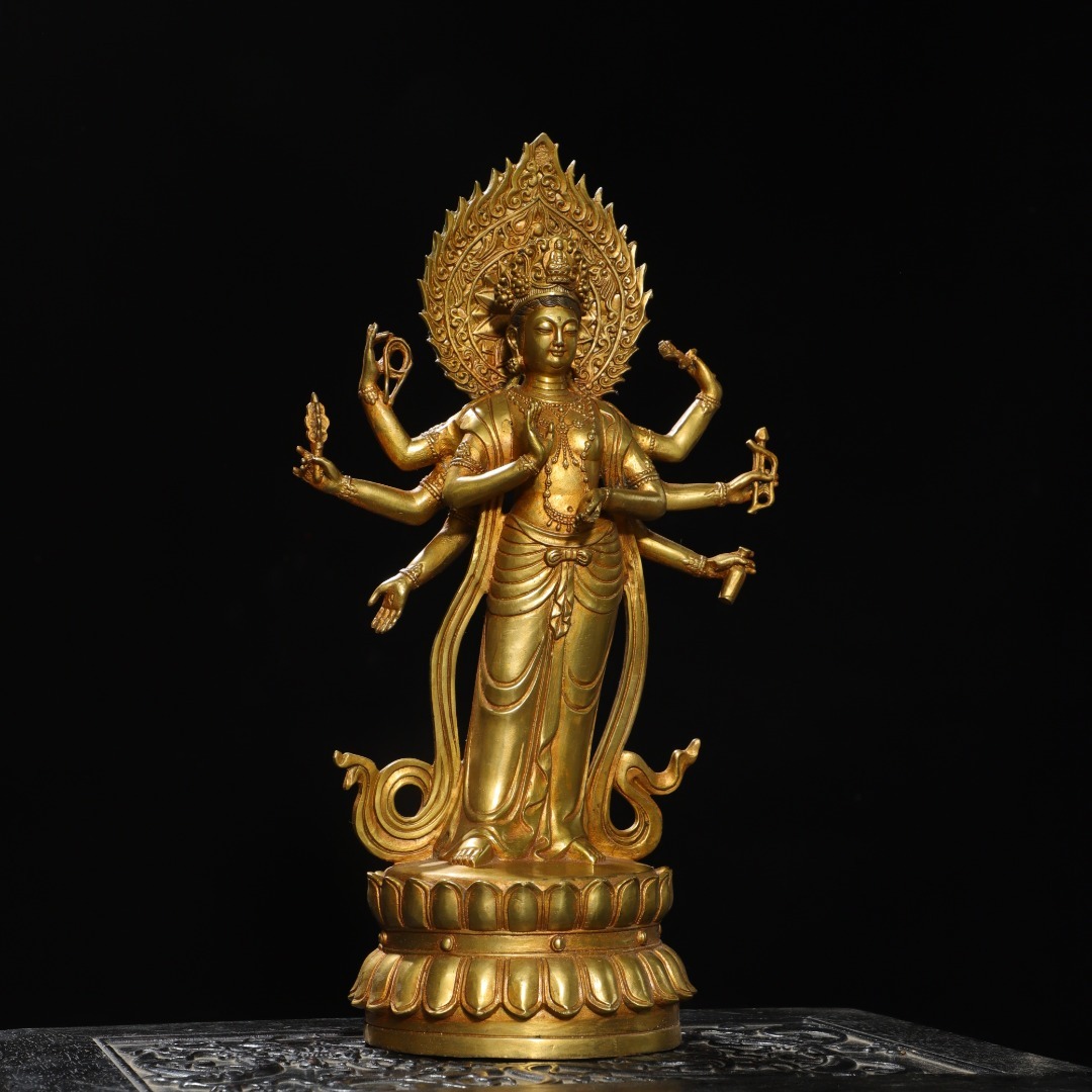 仏像 *珍品旧蔵* 清代 銅金【八腕観音】 の置物 奉納されていた 供養品 銅製品 銅器 極細工 唐物 中国古玩 骨董品 古美味 fu8.7 收藏