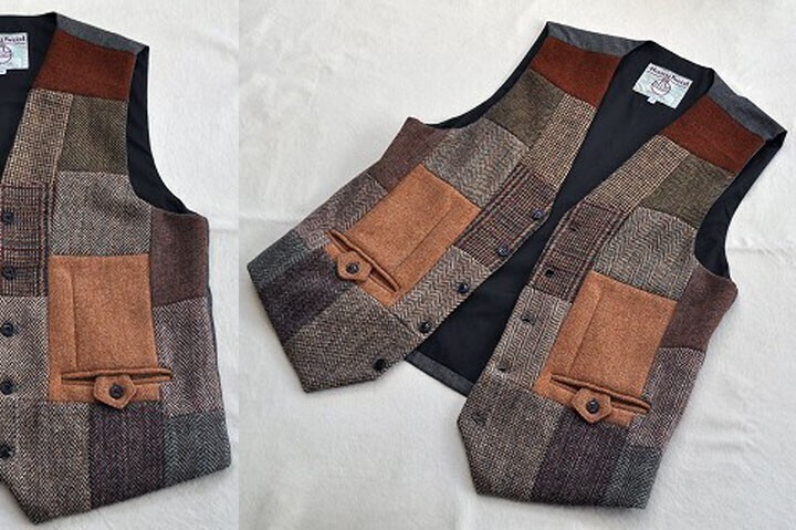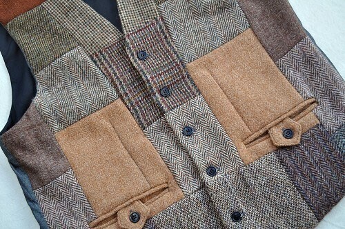 ▼XXLサイズ23-8th405 パッチワークベスト ビンテージハリスツイード リメイク マルチカラージレ 收藏