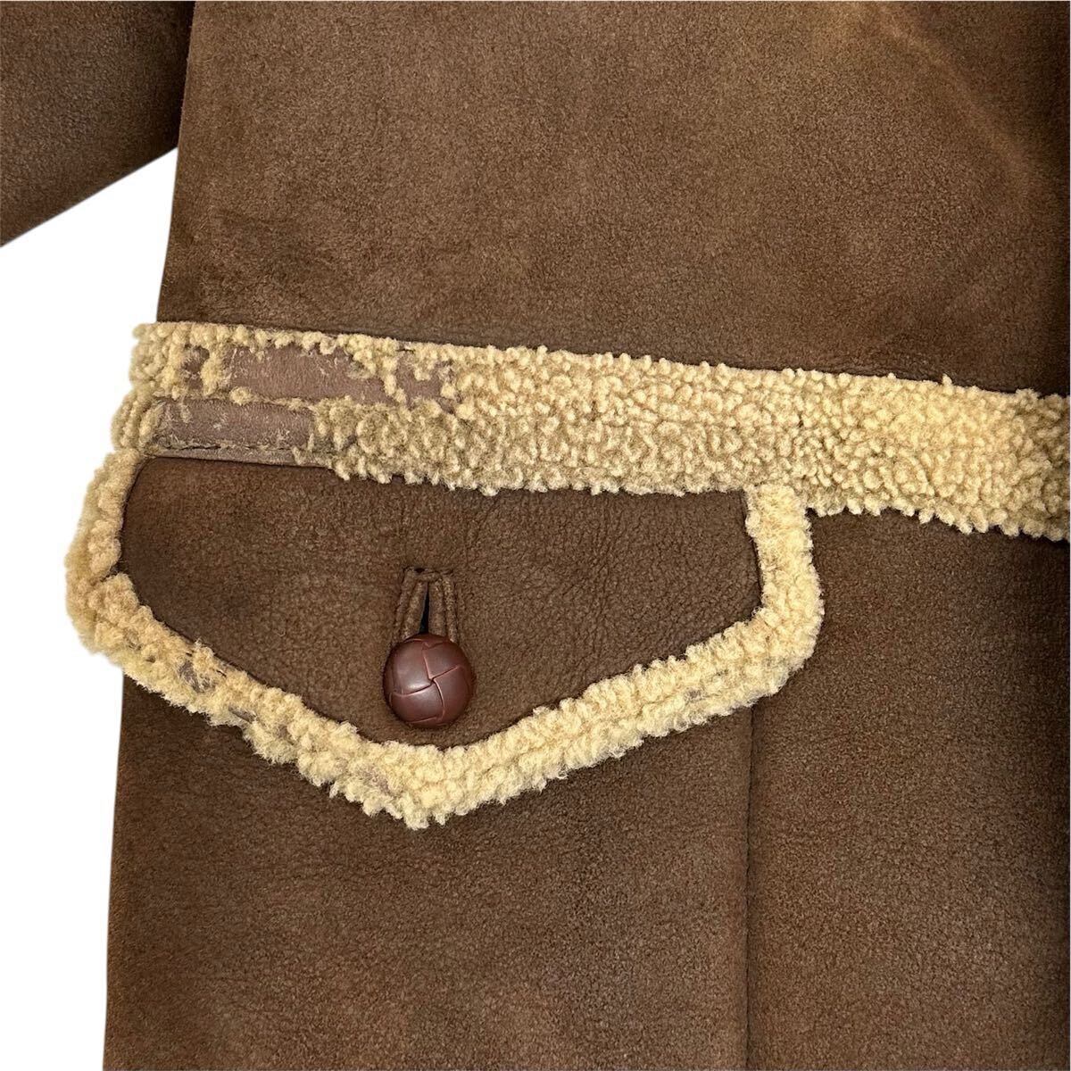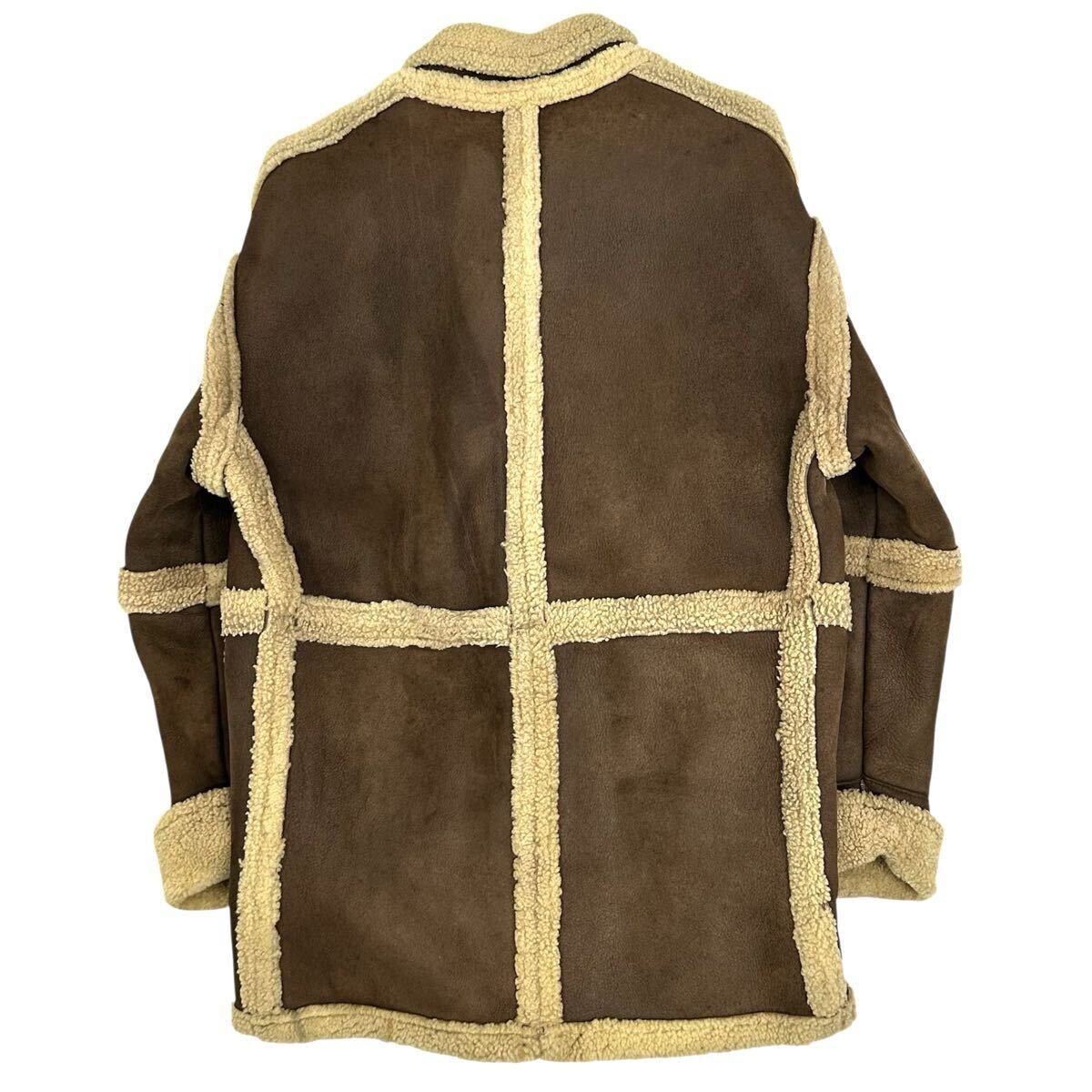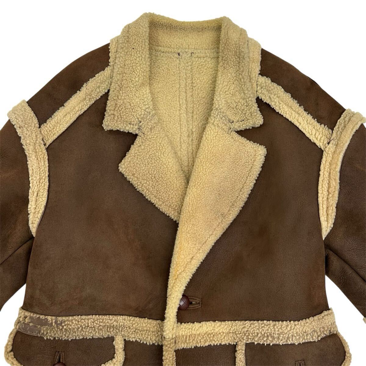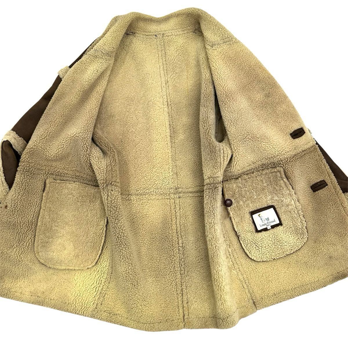 Louis Feraud PARIS ルイフェロー 肉厚 羊革 ムートン メンズ ランチコート(L)ブラウン アウター レザー コート 当時物 收藏