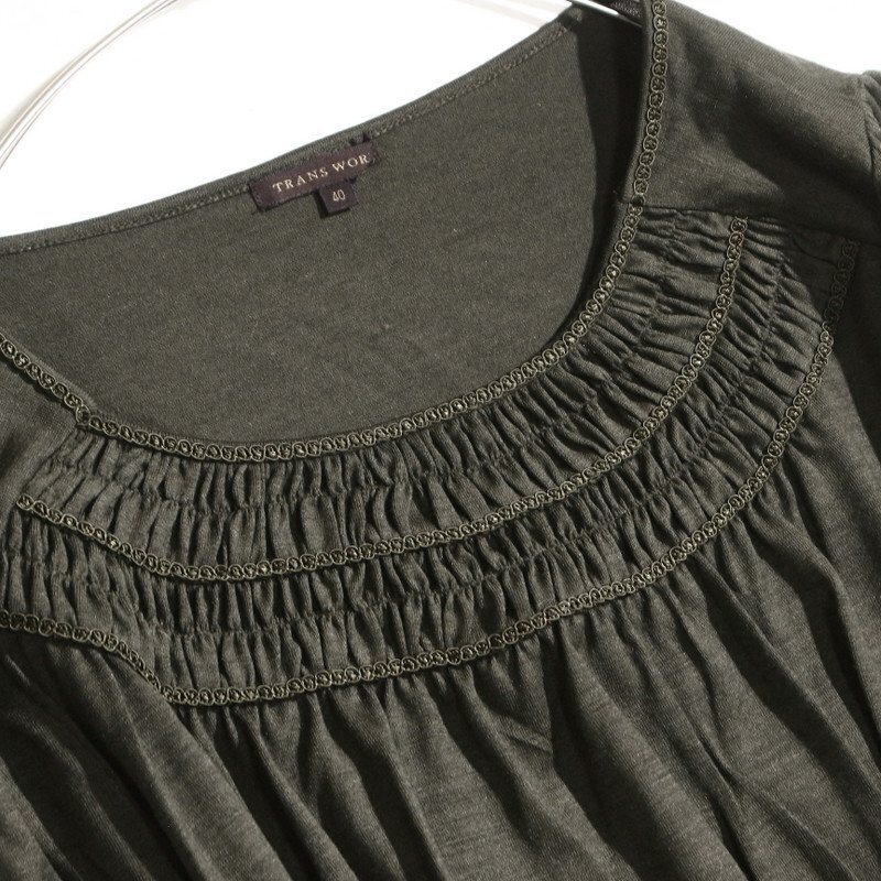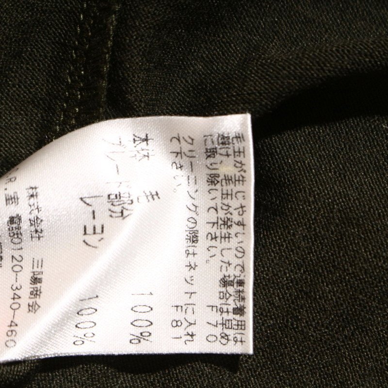 美品 TRANS WORK トランスワーク 株) 三陽商会 秋 冬 毛100% ストレッチ 長袖 ニットカットソー 40 カーキ グリーン 緑 カットソー 收藏