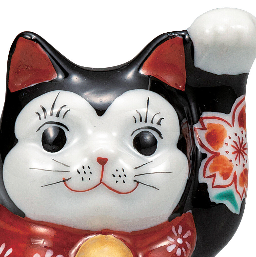 九谷焼! ☆ブラック釉桜・招き猫3.3号☆ K9-1572 新品 商売繁盛 縁起物 千客万来 開運 置物 招き猫 ギフト 收藏
