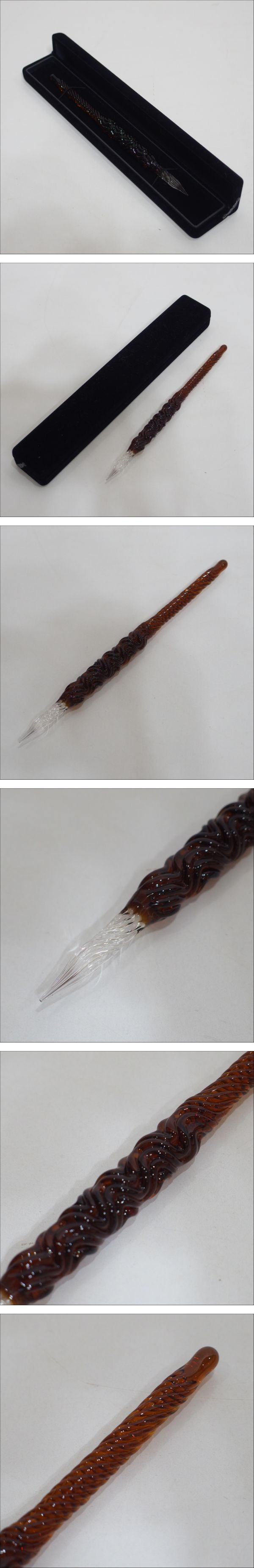 クリスタルガラス◆文房具 ガラス製 ペン(ブラウン)長さ18㎝・専用ケース入り◆未使用保管品 | |||