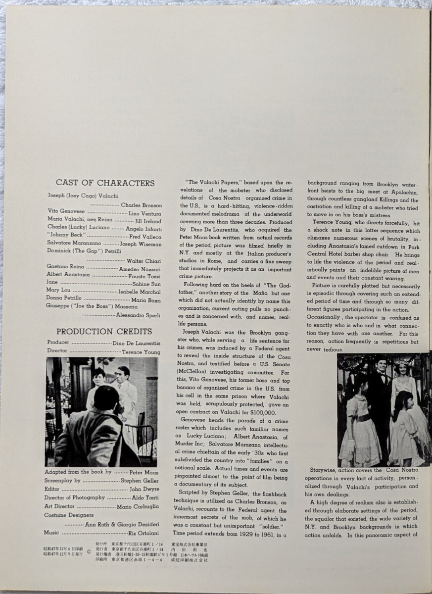 映画のパンフレット「バラキ」監督 テレンス・ヤング 出演 チャールズ・ブロンソン、リノ・バンチェラ 1972年12月5日発行 收藏