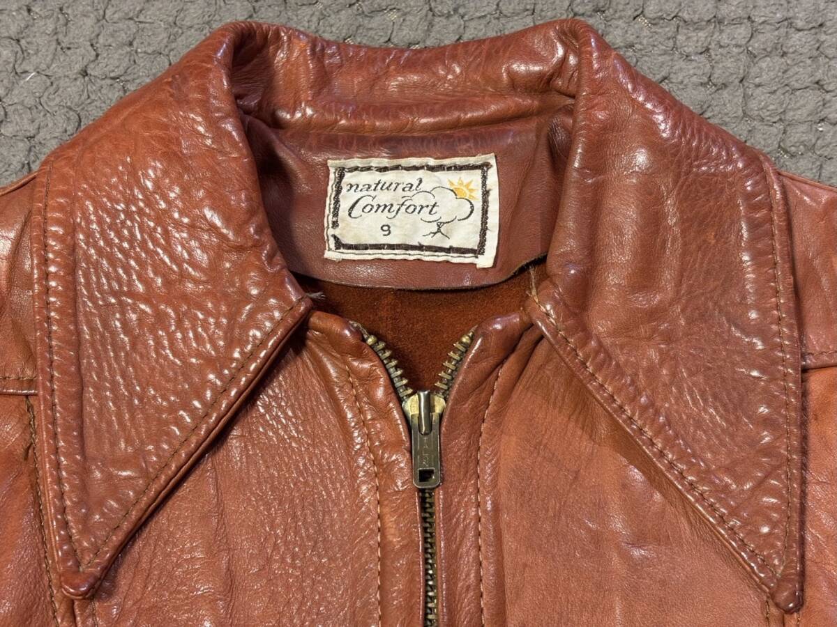 ●natural Comfort ナチュラルコンフォート レザージャケット USA製 アメリカ製 レディース 70’s ビンテージ Vintage Leather Jacket 收藏