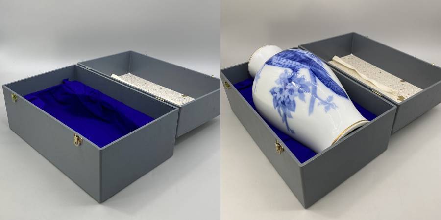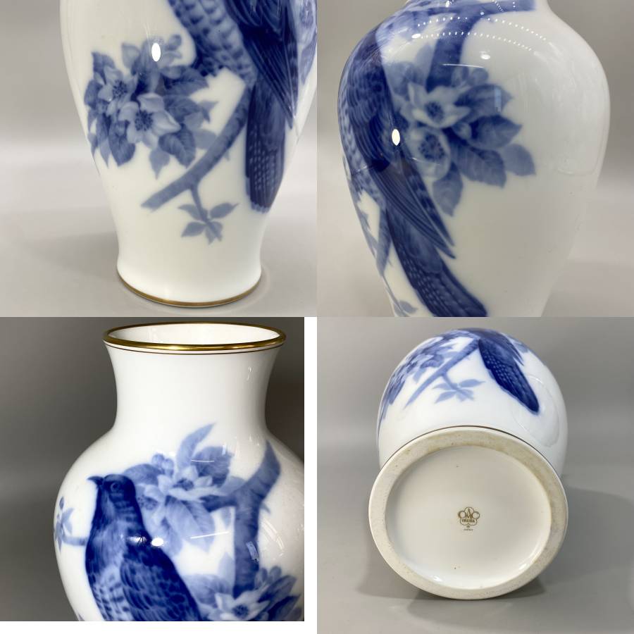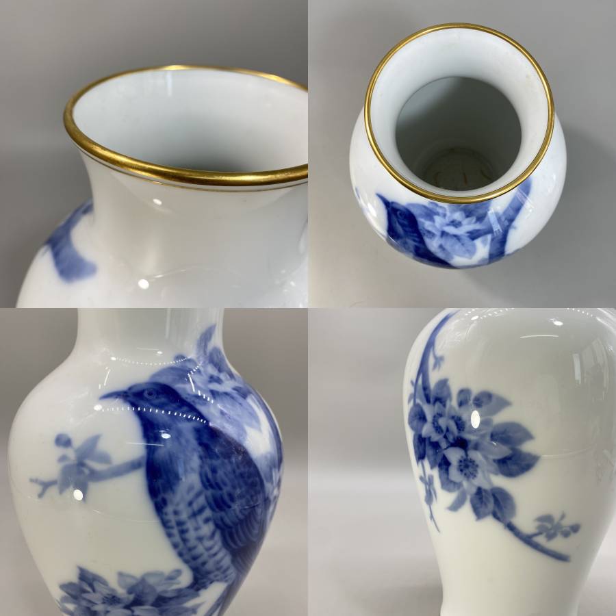 ●大倉陶園 白磁 染付 花鳥文様 花瓶 箱付です。