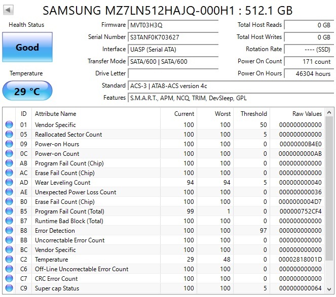 【使用時間:46304時間】Samsung PM871b 512GB SSD MZ7LN512HAJQ-000H1 HP 936839-001 動作確認済 [PT949] 收藏