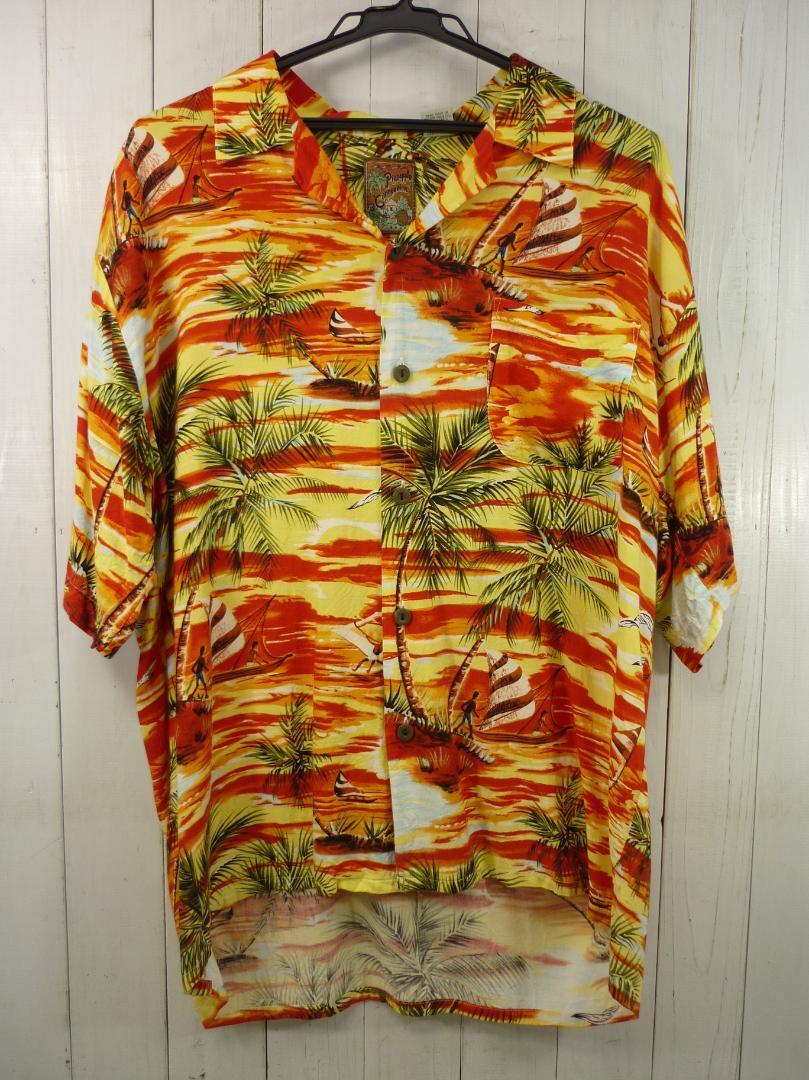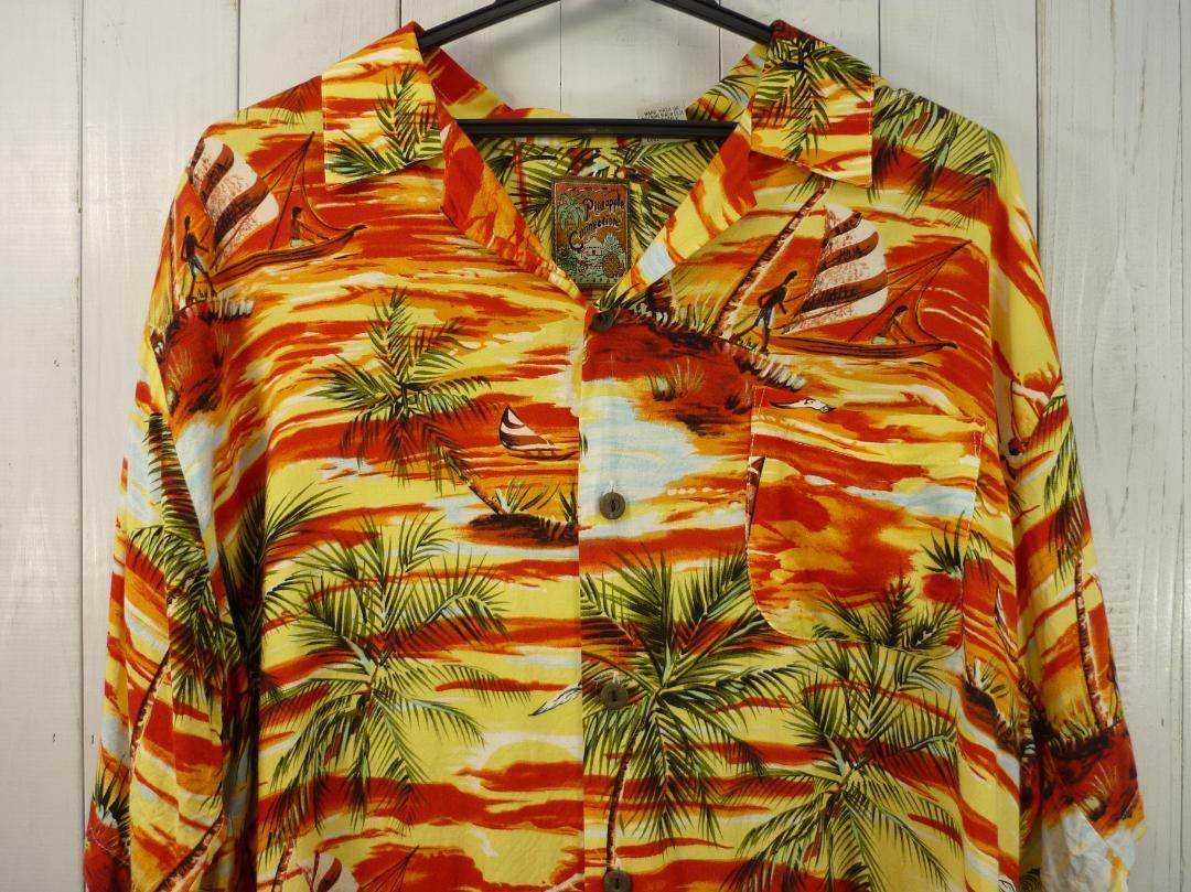 1990年代 レーヨンアロハシャツ パイナップルコネクション Pineapple Connection 夕焼け ヤシの木 カモメ サンセットビーチ USED Y20949 收藏