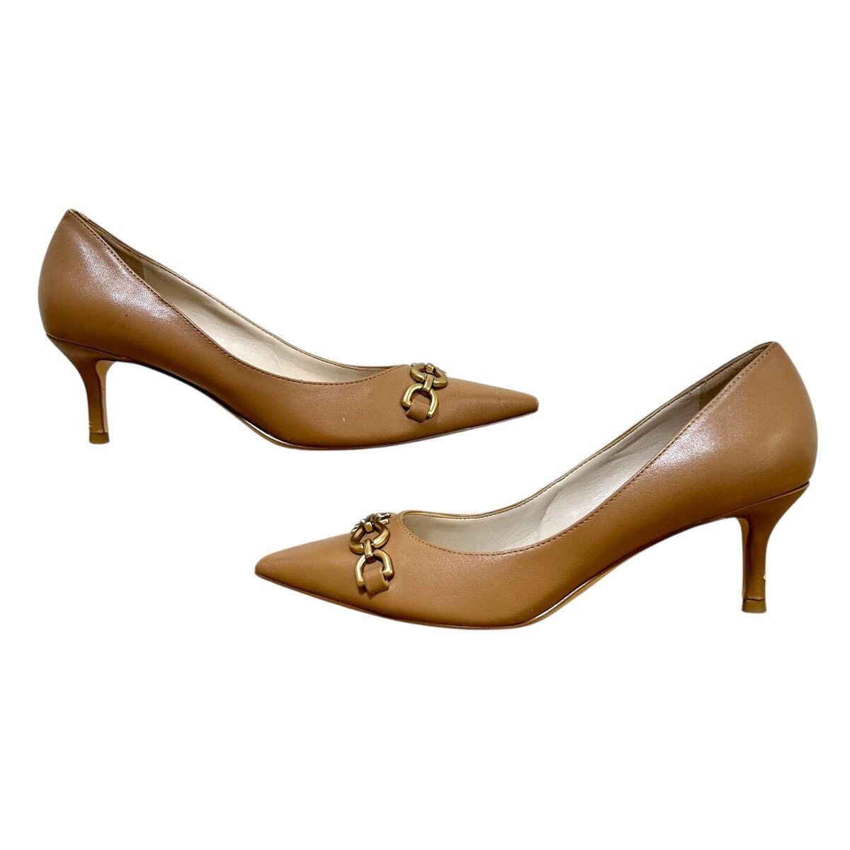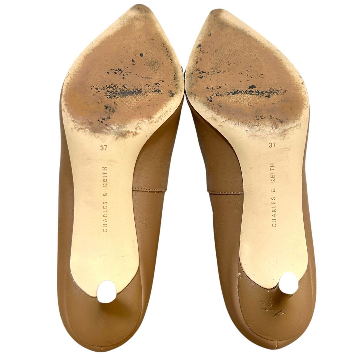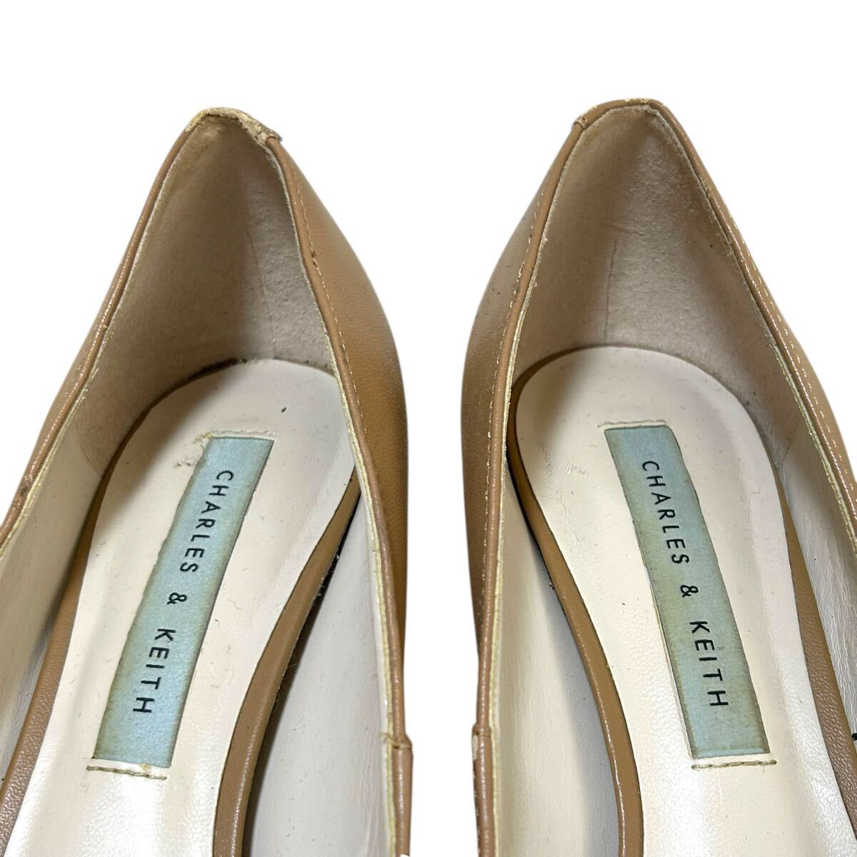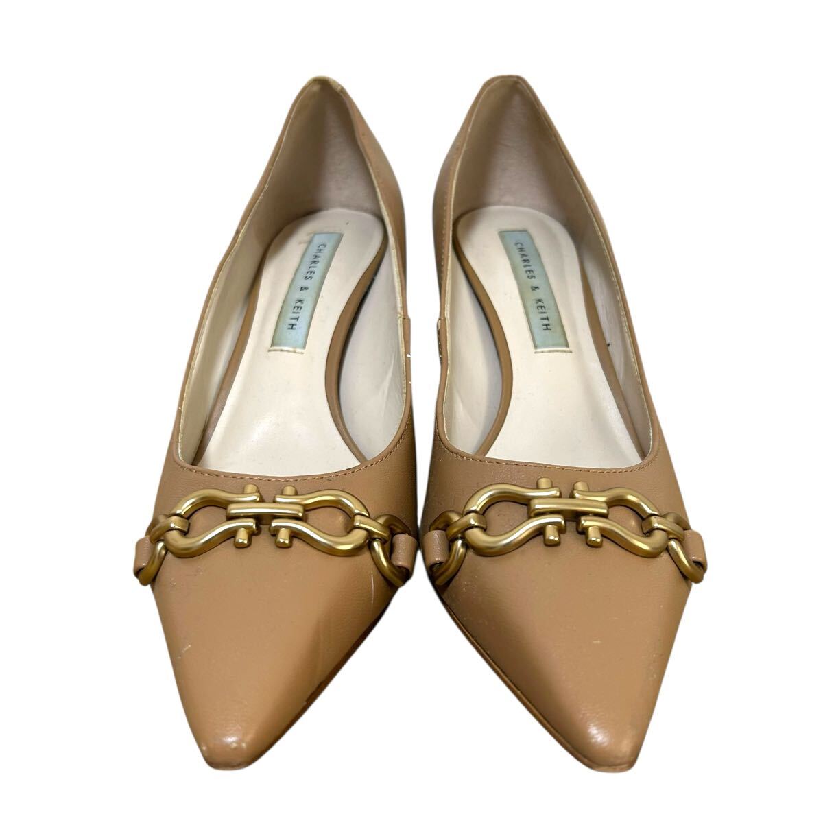※P3 CHARLES & KEITH チャールズアンドキース ヒールレザーパンプス ビット ベージュ 表記37(23.5cm相当) 收藏