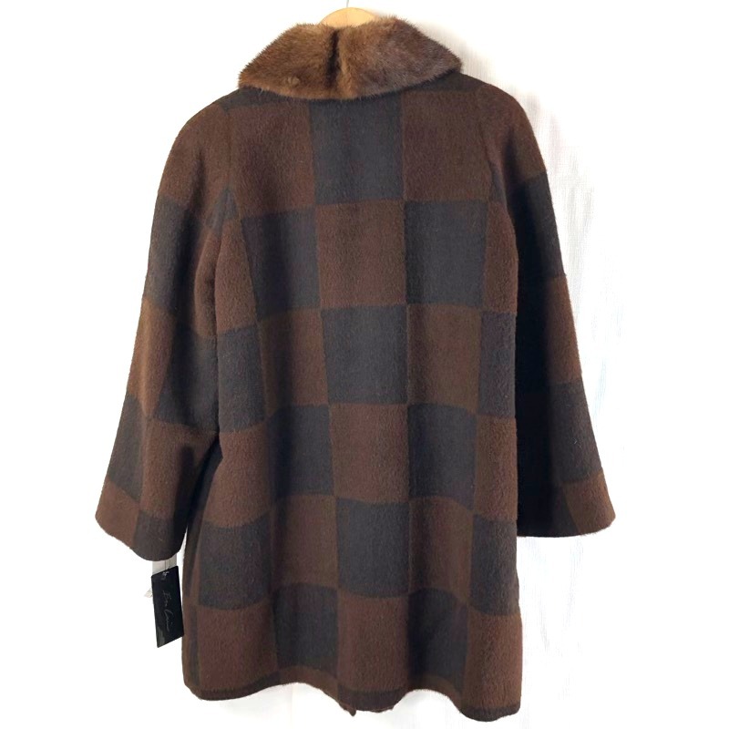 アンレール En Lair コート ロング 首元ファー付 スクエア柄 タグ付き 日本製 ブラウン系 フリーサイズ 936472 收藏