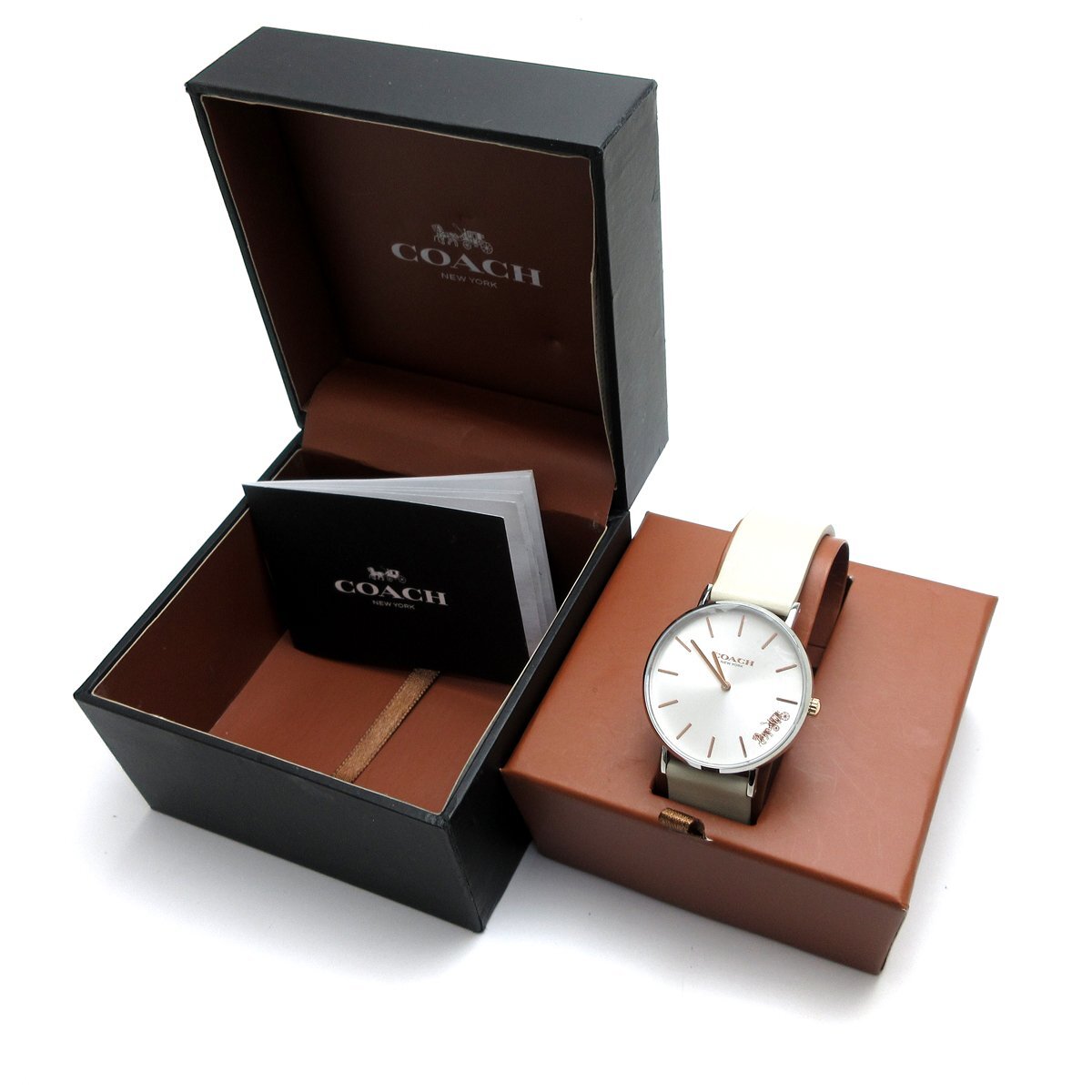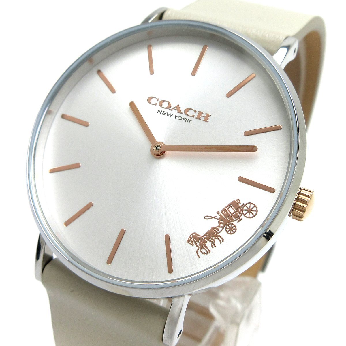 コーチ ペリー レディース シルバー レザー 革 CA.120.7.14.1594 時計 COACH クォーツ 箱 婦人 稼動品 收藏
