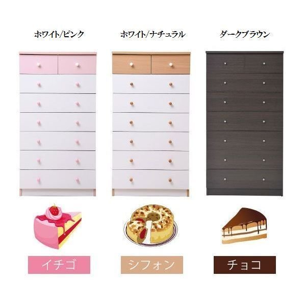 | かわいいピンクとさわやかなナチュラル、シックなダークブラウンをご用意。 お子様から大人まで幅広い世代にピッタリのシンプルなデザイン。 引き出しには衣類から小物までたっぷり収納できます。 |