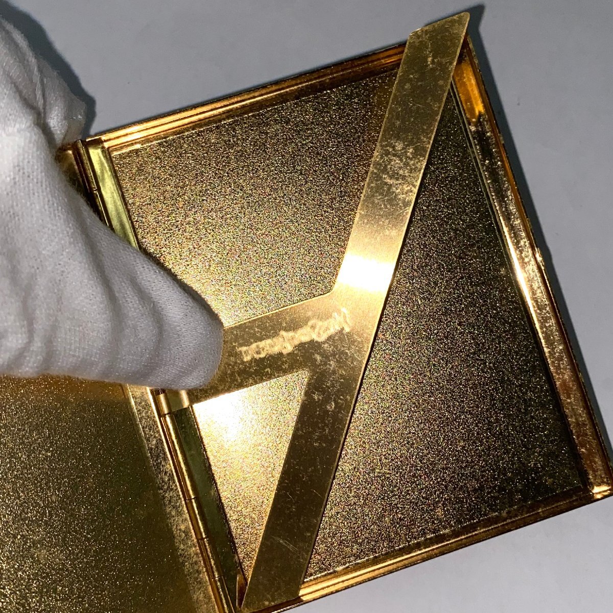 ・多数のカビや白くすみ、多少の擦れや傷、角の一部に僅かなメッキ剥げや黒ずみ |
