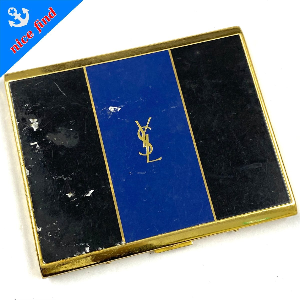 ◆イヴ サンローラン Yves Saint Laurent◆シガレットケース 煙草ケース 名刺入れ カードケース ロゴ ブラック ブルー ゴールドカラー 收藏