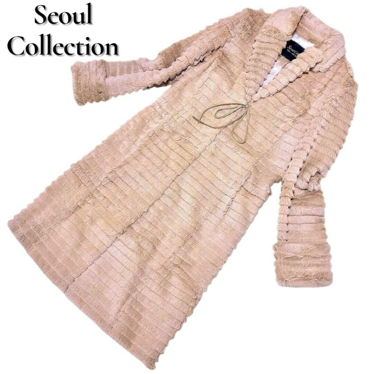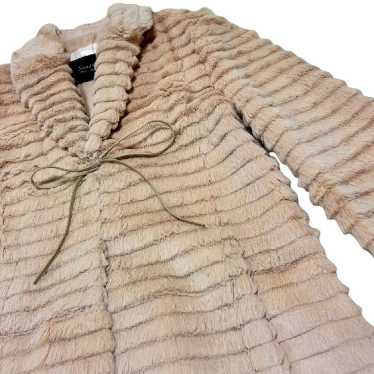 ソウルコレクション ファーコート ロングコート ラビットファー アウター レディース Mサイズ ベージュ Seoul Collection 毛皮 ウサギ 收藏