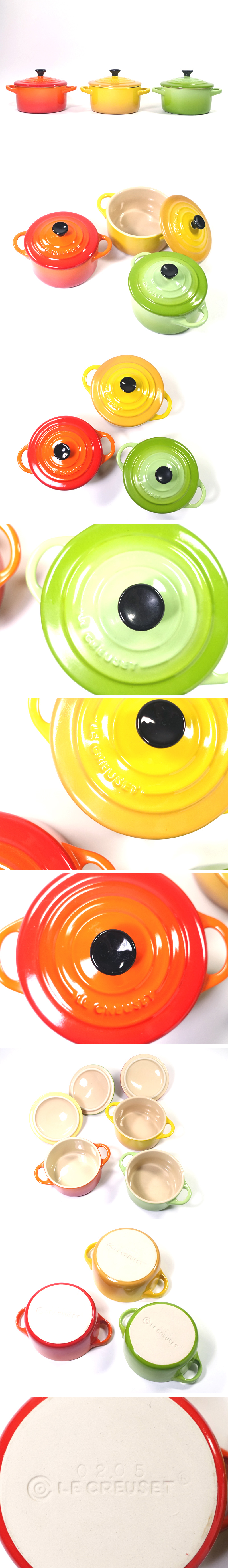∇花∇【ル・クルーゼ/LE CREUSET】 ミニ・ココット 10cm オレンジ・イエロー・グリーン3点セット ストーンウェア 收藏