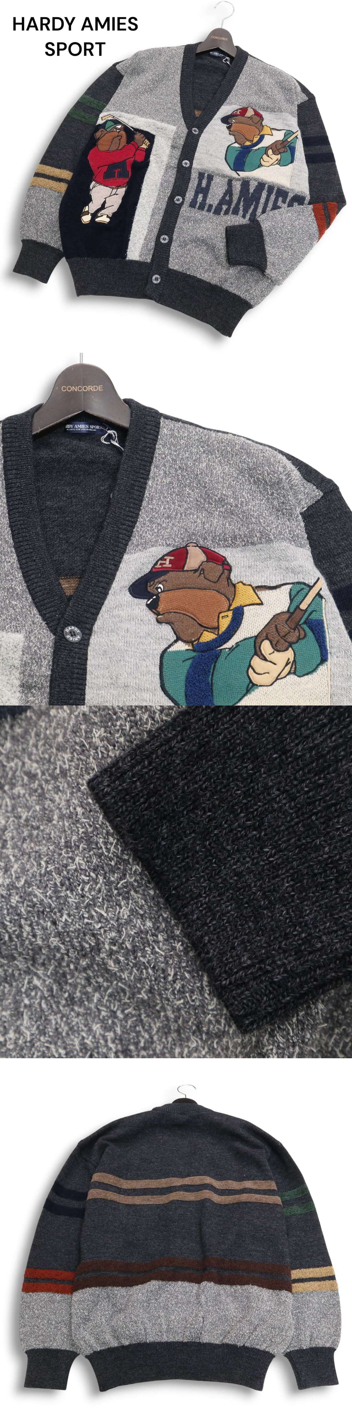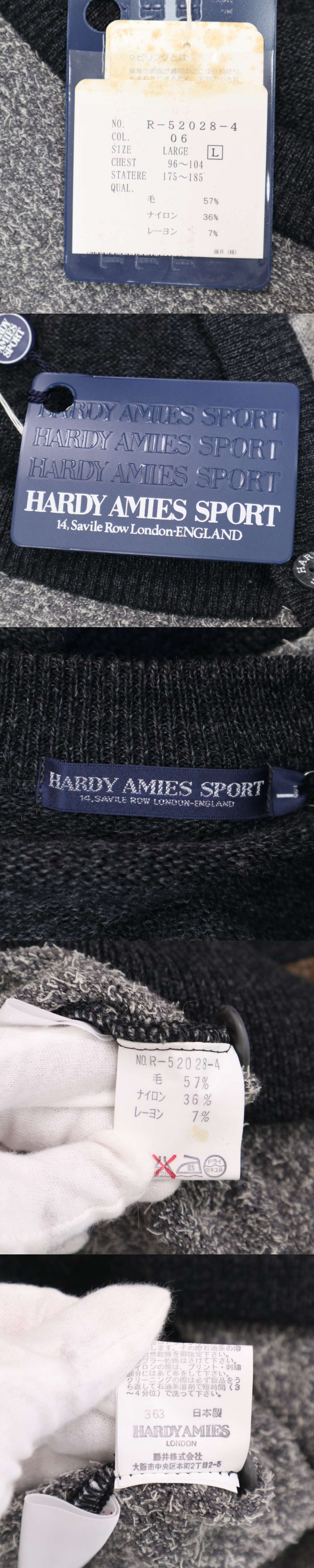 未使用★ HARDY AMIES SPORT ハーディエイミス 秋冬 ロゴ 犬 ゴルファー刺繍★ ウール ニット カーディガン Sz.L メンズ 收藏