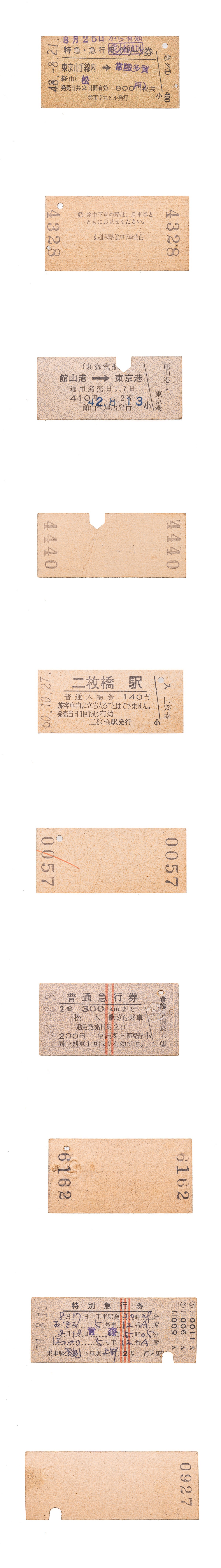S-614 【国鉄硬券】(18)急行券など 古い切符10枚セット◆昭和レトロ 鉄道グッズ◆ ランダム コレクター放出品 收藏