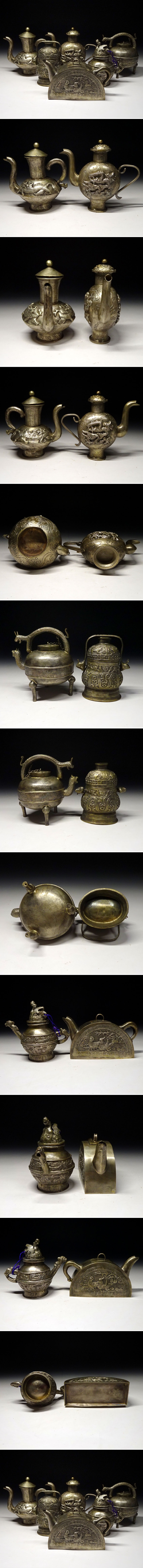 緑屋c■ 中国古玩 銅銀 白銅 水滴 水注 6点 唐物 時代物 i9/12-6172/4-3#80
