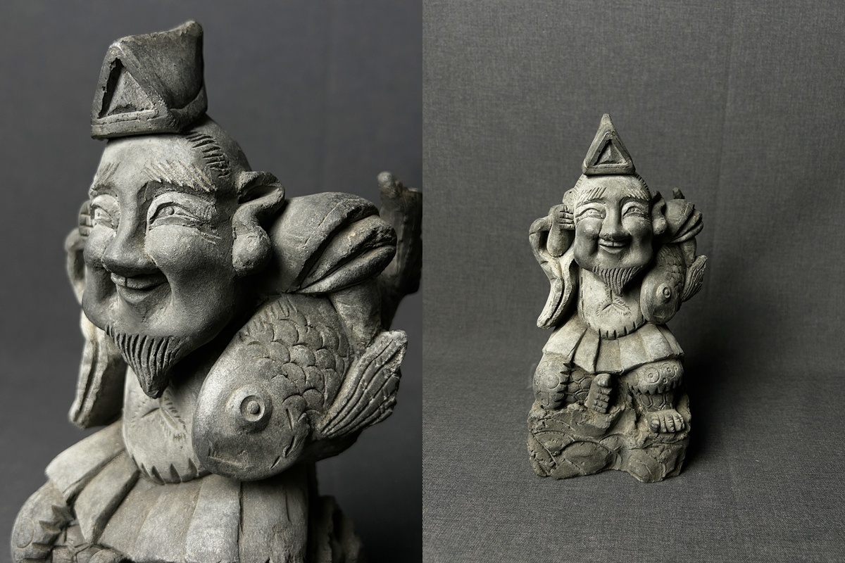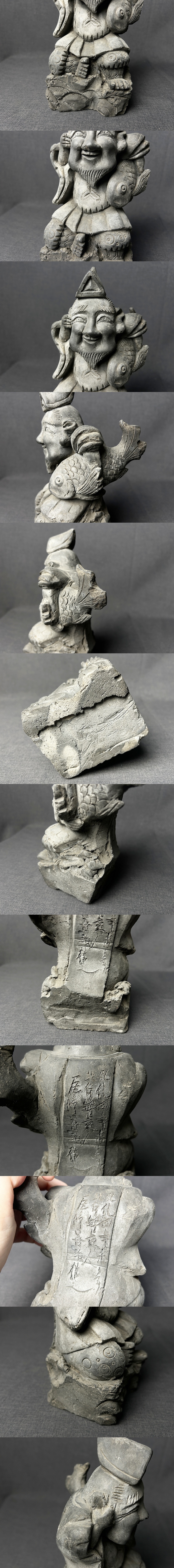 希少 弘化四〇末 在銘 瓦 恵比寿様 人形 高さ22.8cm◇江戸期/時代物/置物/東洋彫刻/縁起物/七福神/骨董/古美術/鬼瓦/神社/仏閣 收藏
