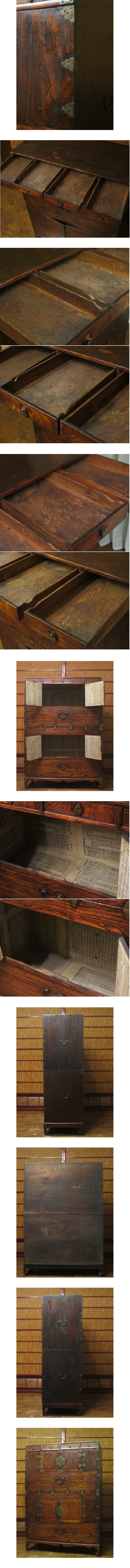 19世紀~20世紀初頭 李朝古民具 朝鮮美術 朝鮮古民芸 古無垢材 真鍮金具 時代 二層箪笥 書庫 朝鮮棚 飾り棚 時代箪笥 モリジャン 古玩 收藏