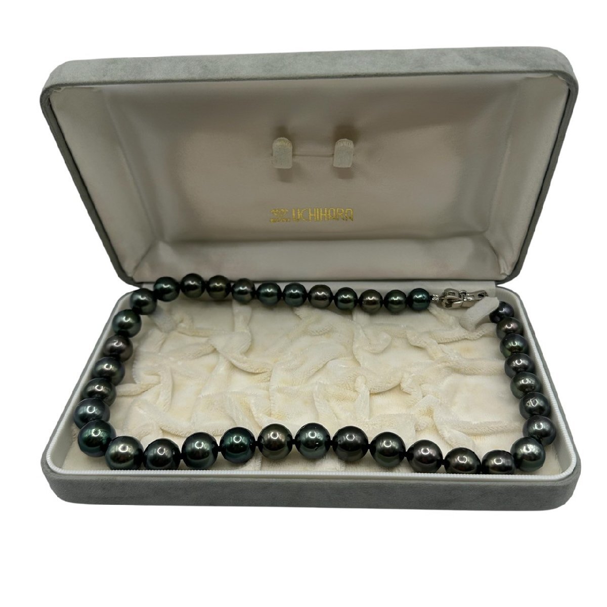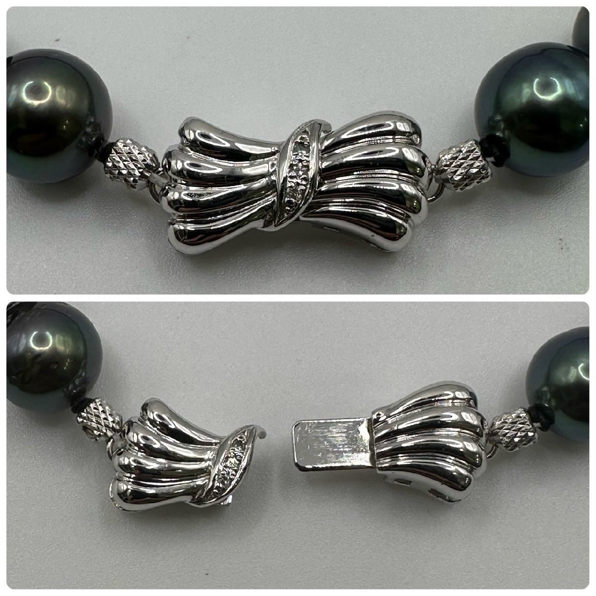 | 商品名 | 真珠 パール ネックレス 最小約9mm ~最大12mm玉 80g 37粒 47cm ブラックパール系 留め具 K14WG 刻印 D0.02ct アクセサリー 冠婚葬祭 |