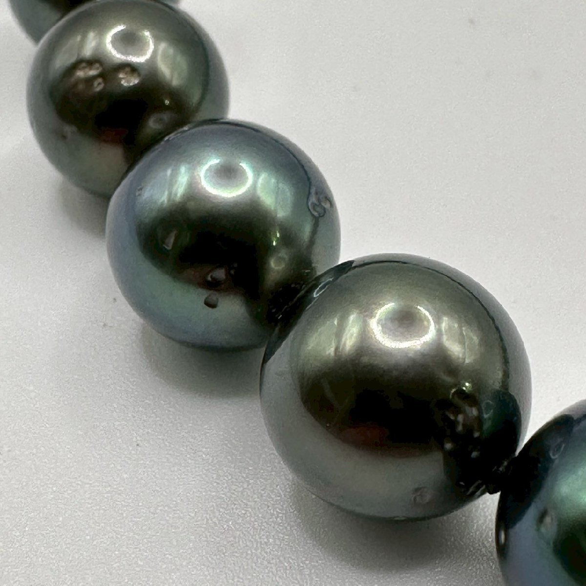 USED 真珠 パール ネックレス 最小約9mm ~最大12mm玉 80g 37粒 47cm ブラックパール系 留め具 K14WG D0.02ct アクセサリー 冠婚葬祭 收藏