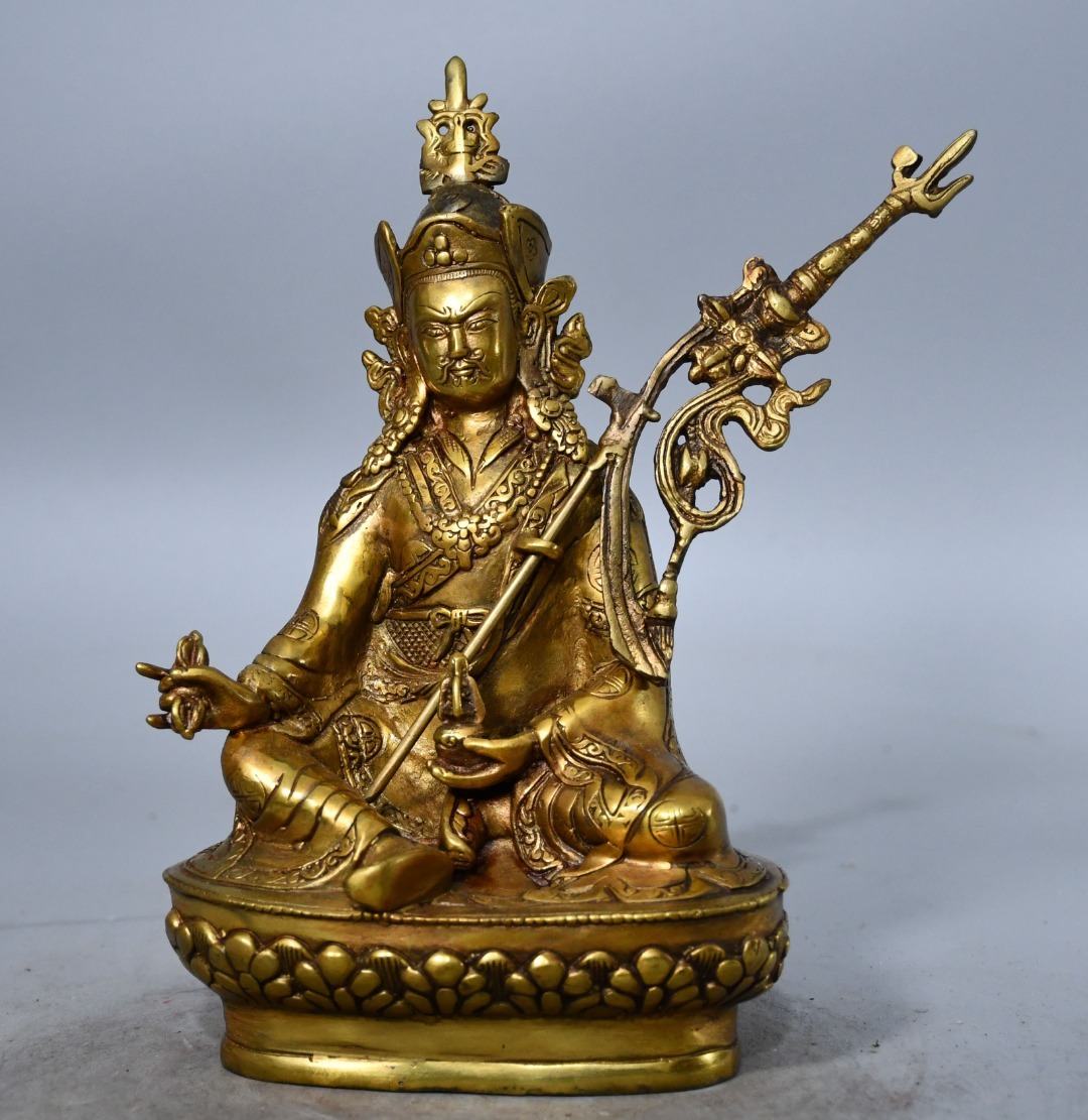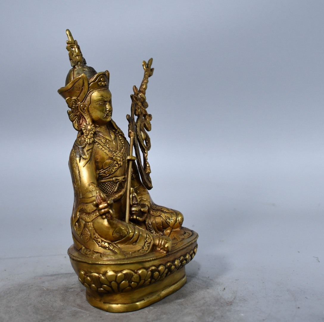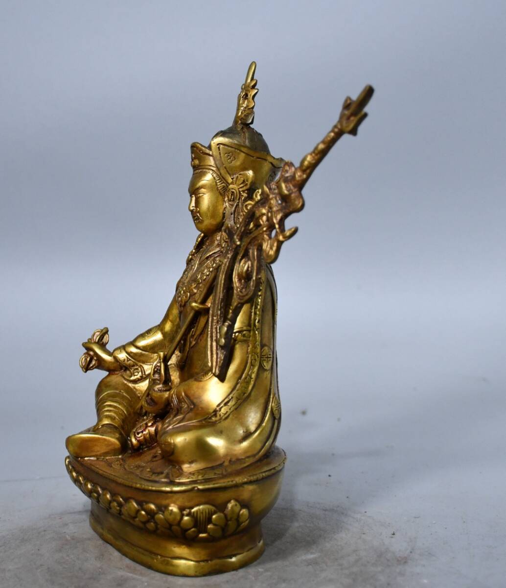 仏像 清代 旧蔵 チベット古寺 純銅金蔵伝蓮華生大師造形銅製 銅琉金 唐物 收蔵品 時代物 古美術 古置物 希少珍品 供養品 文房具8.18fo 收藏