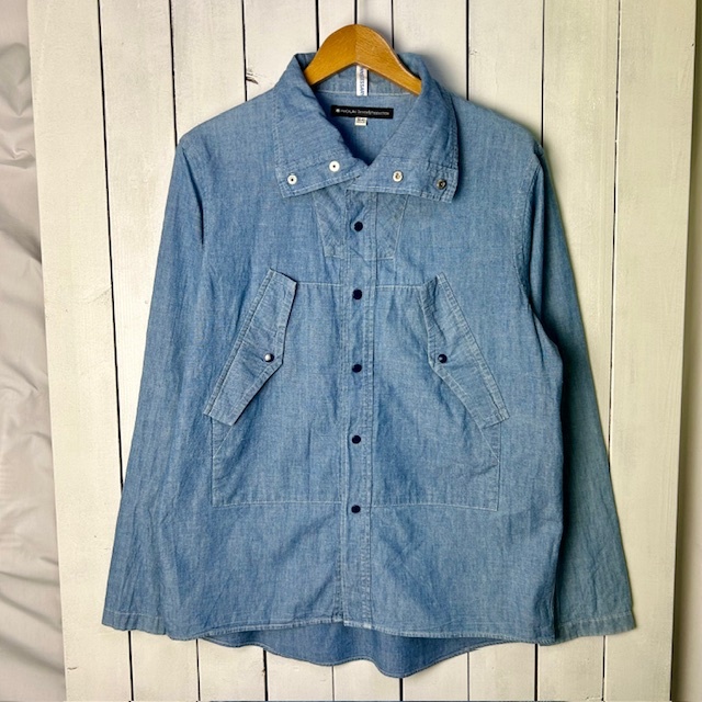sh●A36 NOUN 薄手 シャンブレーシャツジャケット M 38/40 薄青 長袖 綿 日本製 NECESSARY OR UNNECESSARY インディゴ 收藏