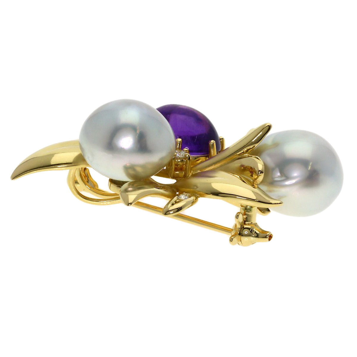 TASAKI タサキ パール 真珠 ダイヤモンド ブローチ K18イエローゴールド レディース 中古 收藏