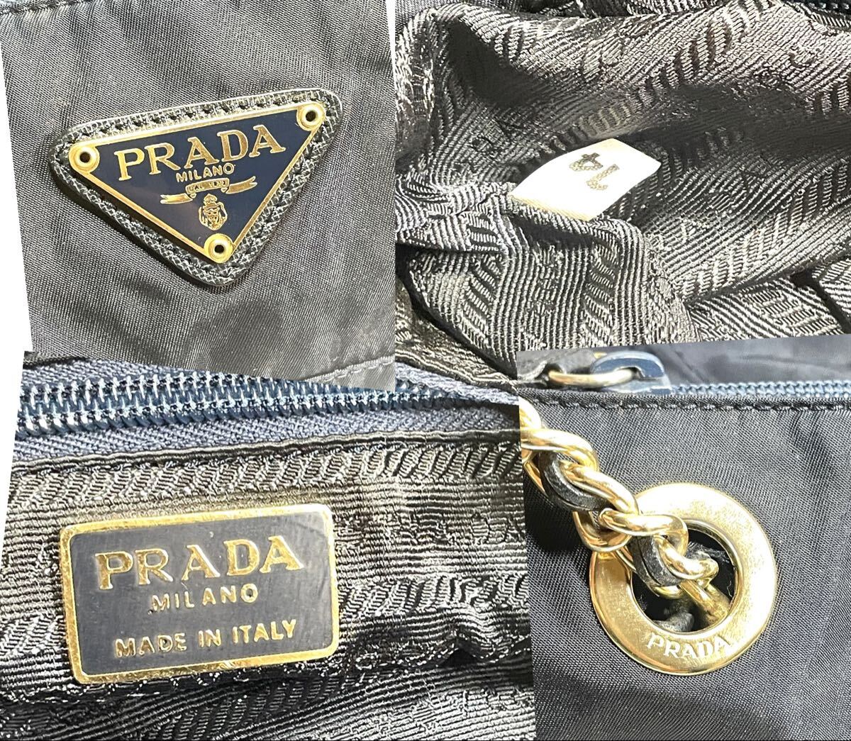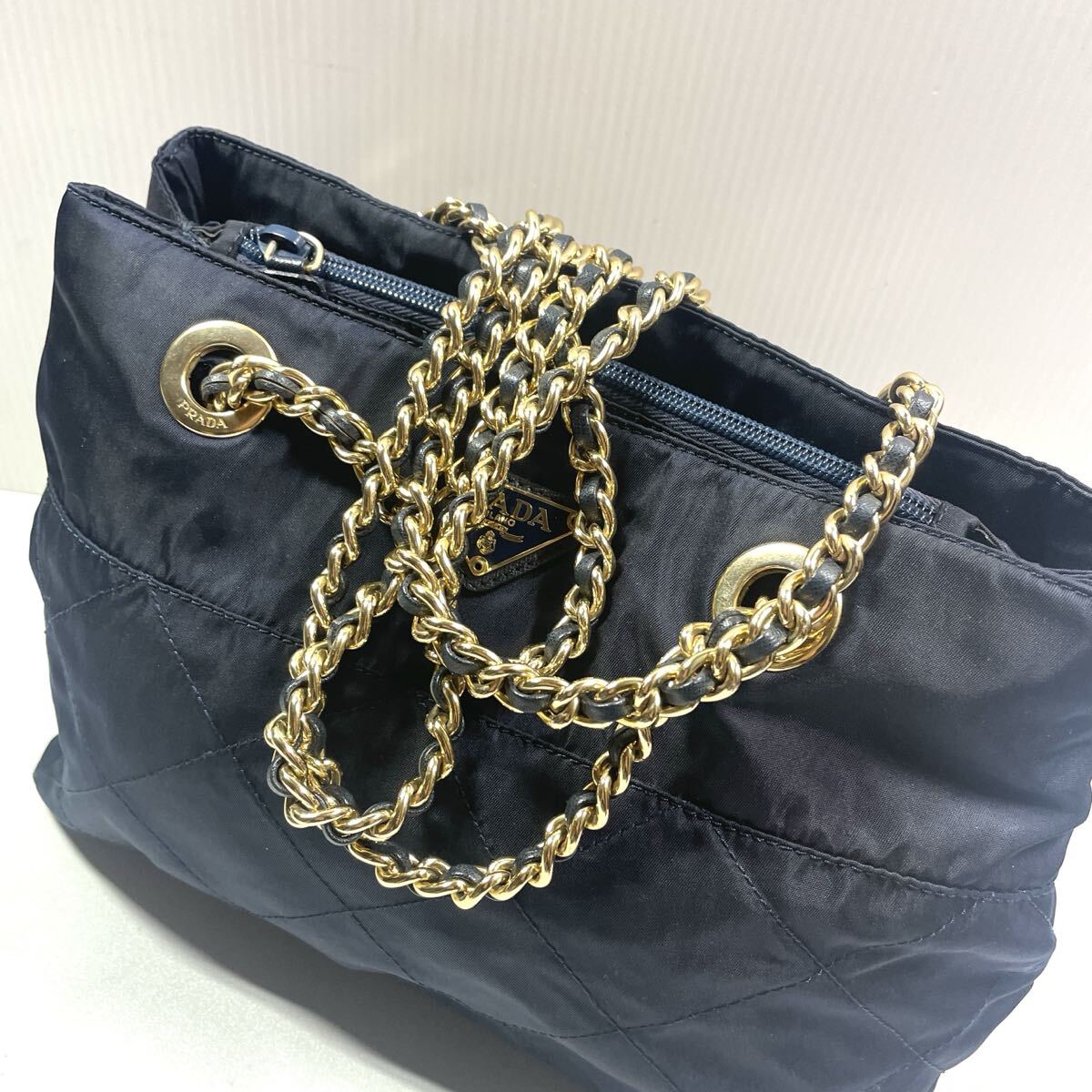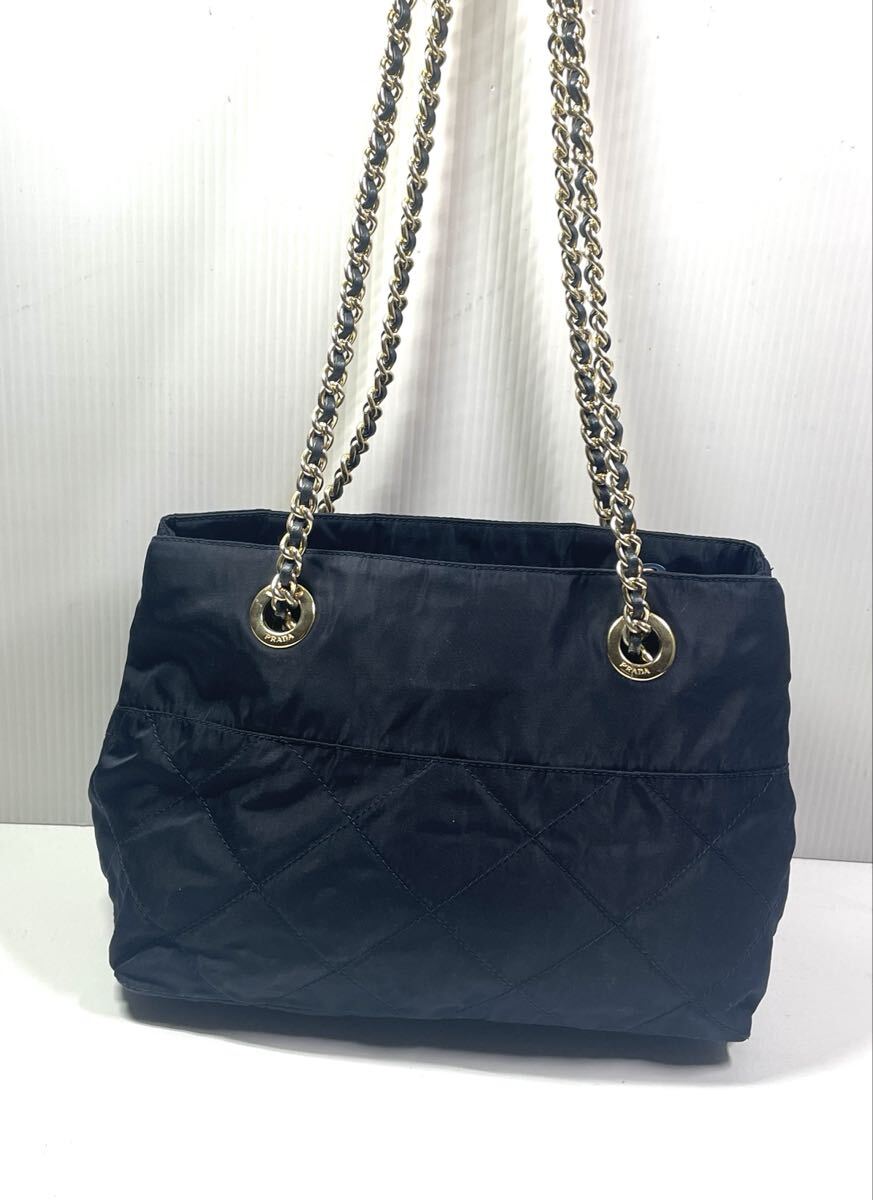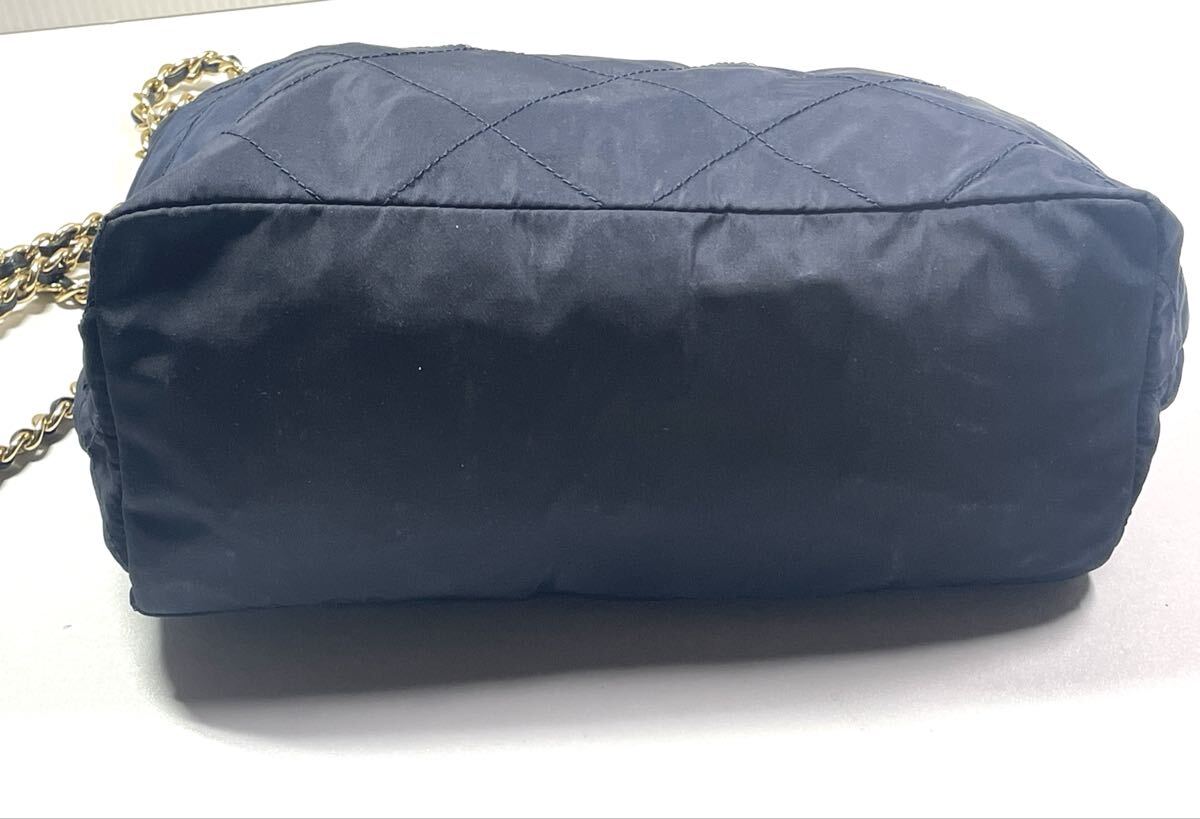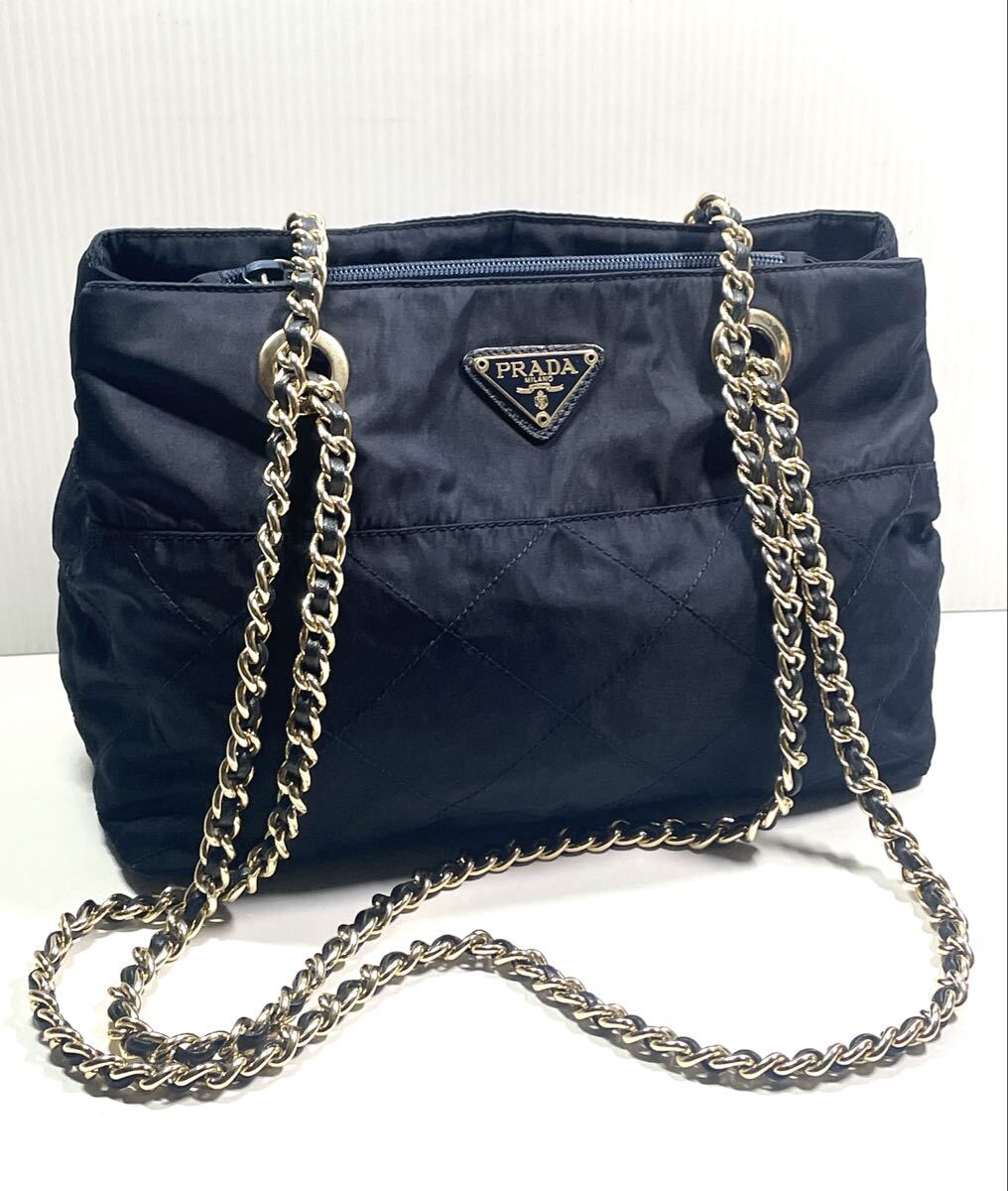 【未使用に近い】プラダ キルティング チェーンショルダーバッグ ネイビー PRADA チェーン キルティング 收藏