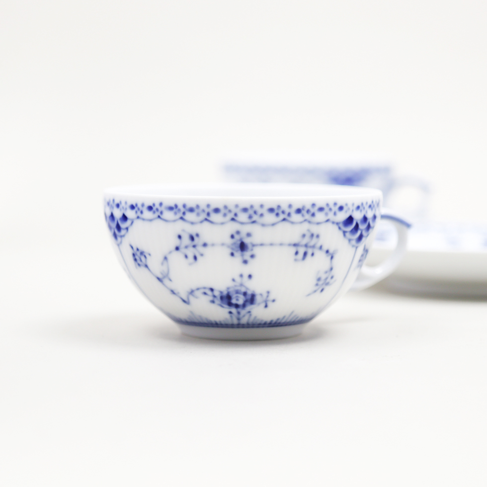 NTL2 ロイヤルコペンハーゲン ブルーフルーテッド ハーフレース ティーカップ&ソーサー 2客 未使用 收藏