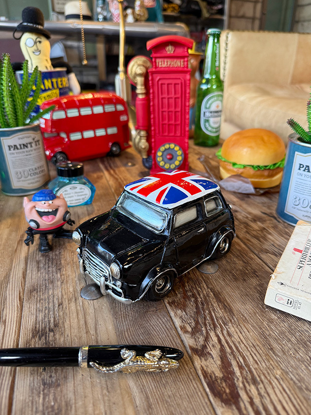 そのアイコニックなデザインを、ポリレジン素材でリアルに再現したのがこのミニカー型バンク!