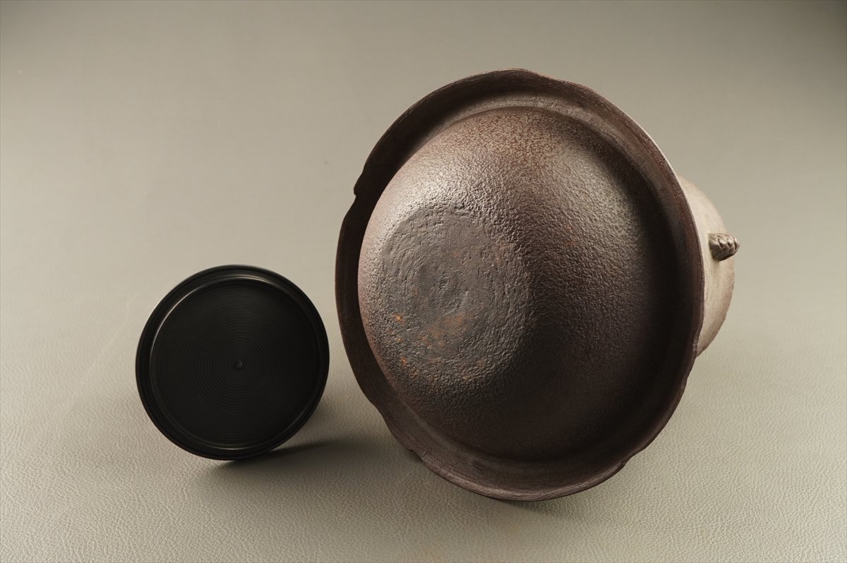 千寿 【競売 10/25 迄】人間国宝 高橋敬典 浜松地紋 富士釜 R71027◆在銘 共箱 茶道具 古美術 時代品 同梱不可 收藏