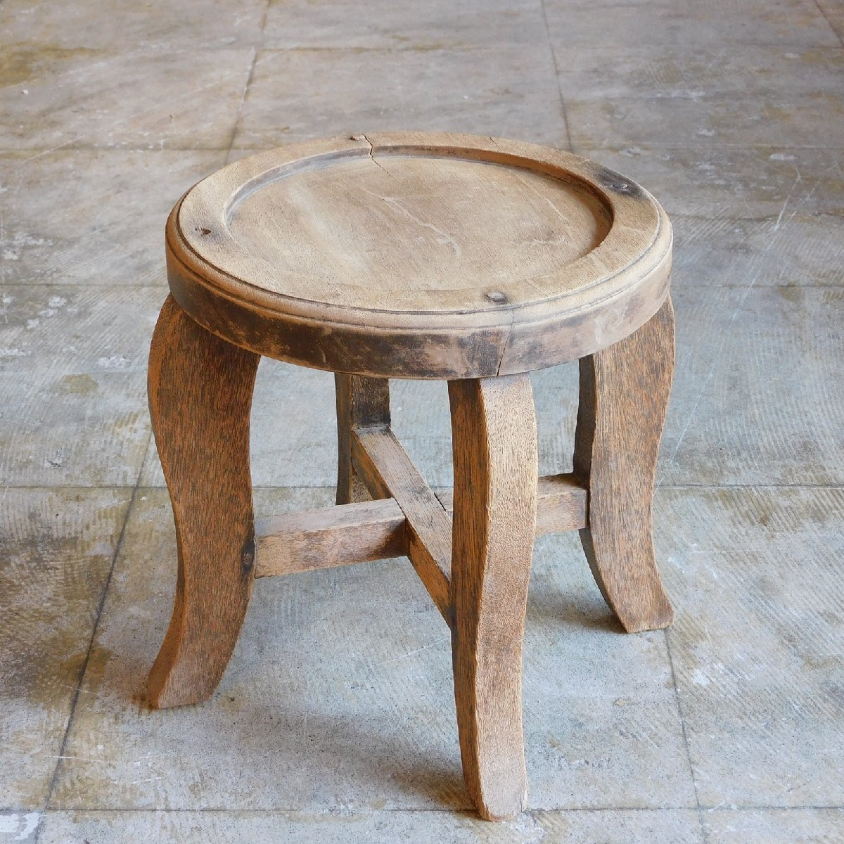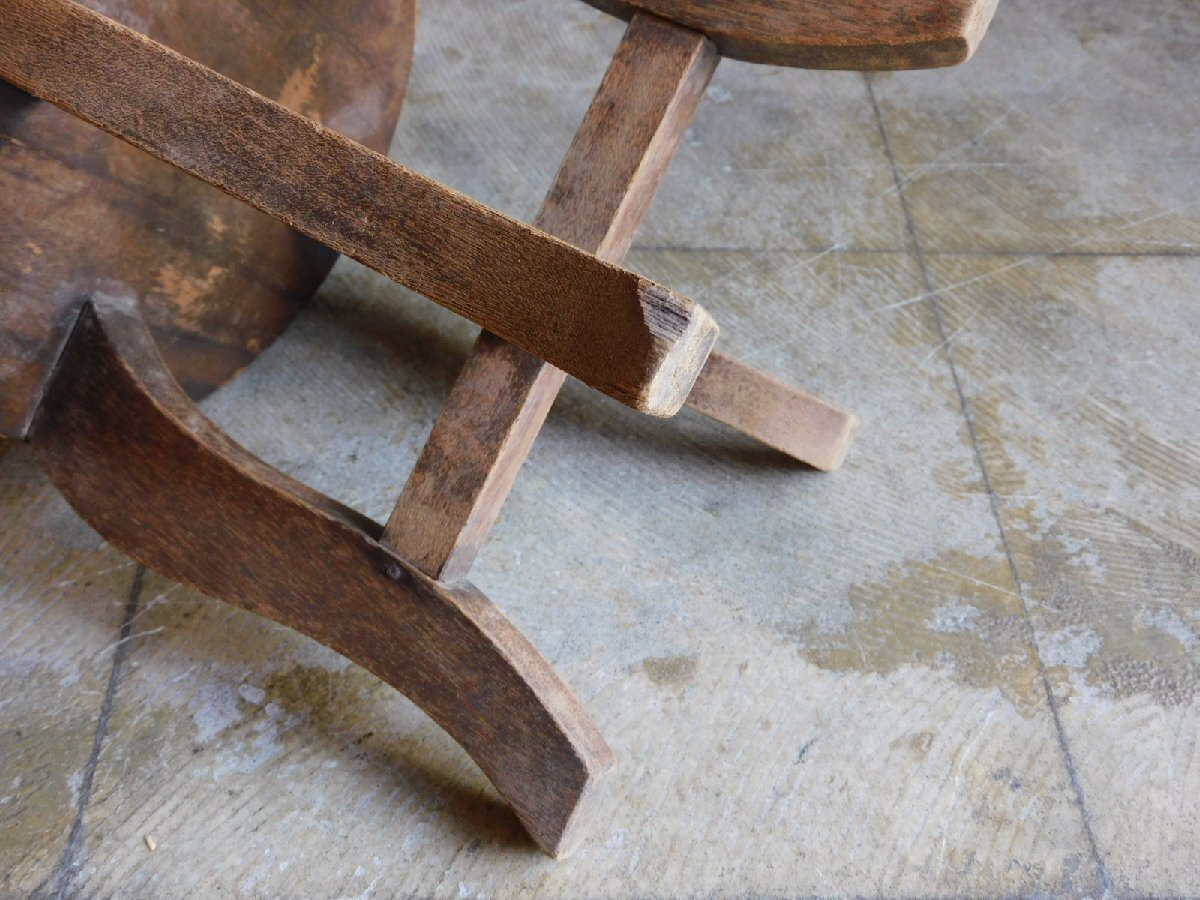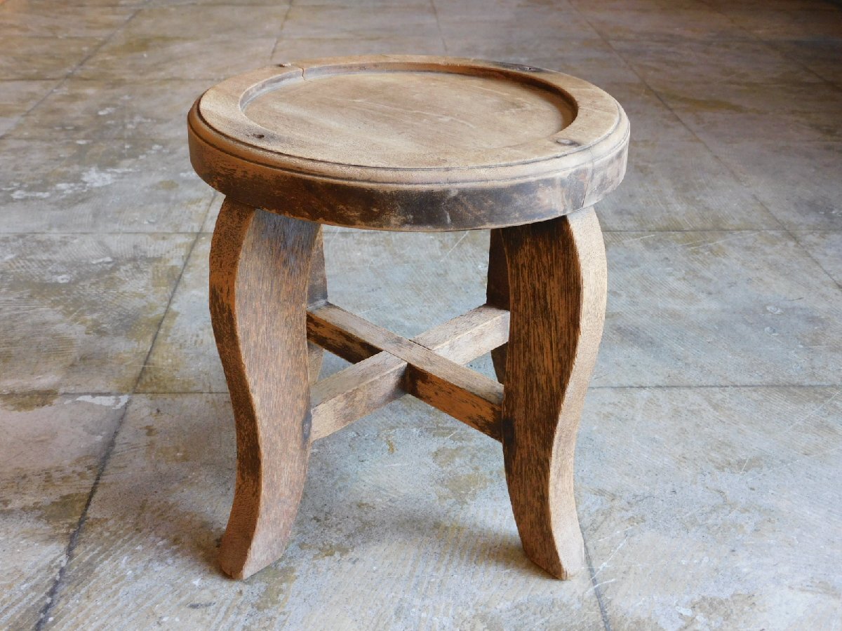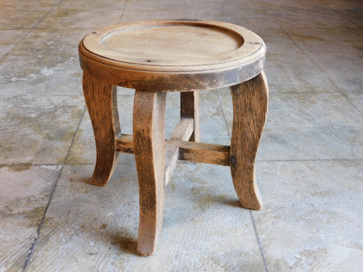 戦前 ふるい木味の展示台 扇風機台 HK-a-05599 / 花台 木製 無垢材 陳列台 花台 無垢材 ナイトテーブル プランツスタンド 收藏