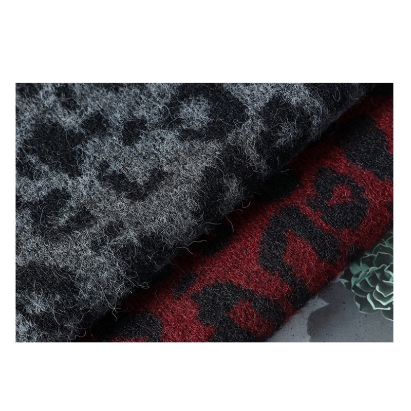 新品 DEENXINWA ウール混 ニットセーター メンズ 長袖 クルーネック ヒョウ柄 レオパード リブ編み 厚手 秋冬 チャコールグレー/A1600-3XL 收藏